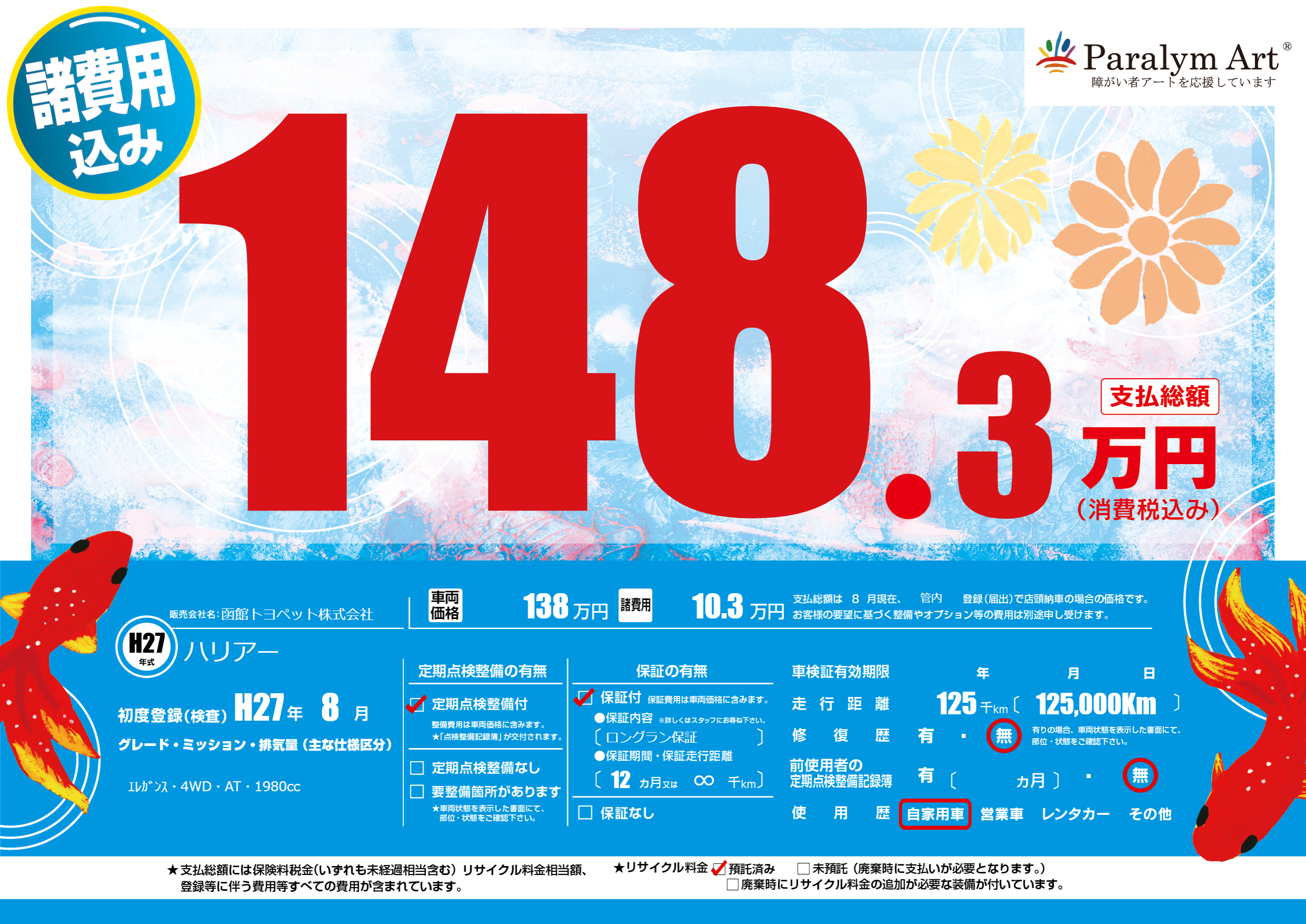 | 走行キロ | 12.5万km | 初年度登録 | H27年8月 |