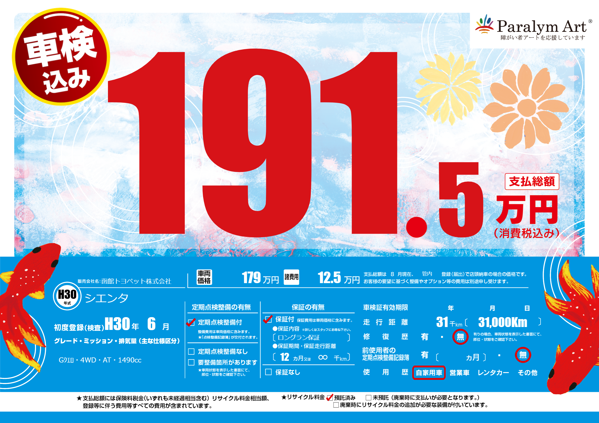 | 車名 | シエンタ | グレード ミッション 排気量 |