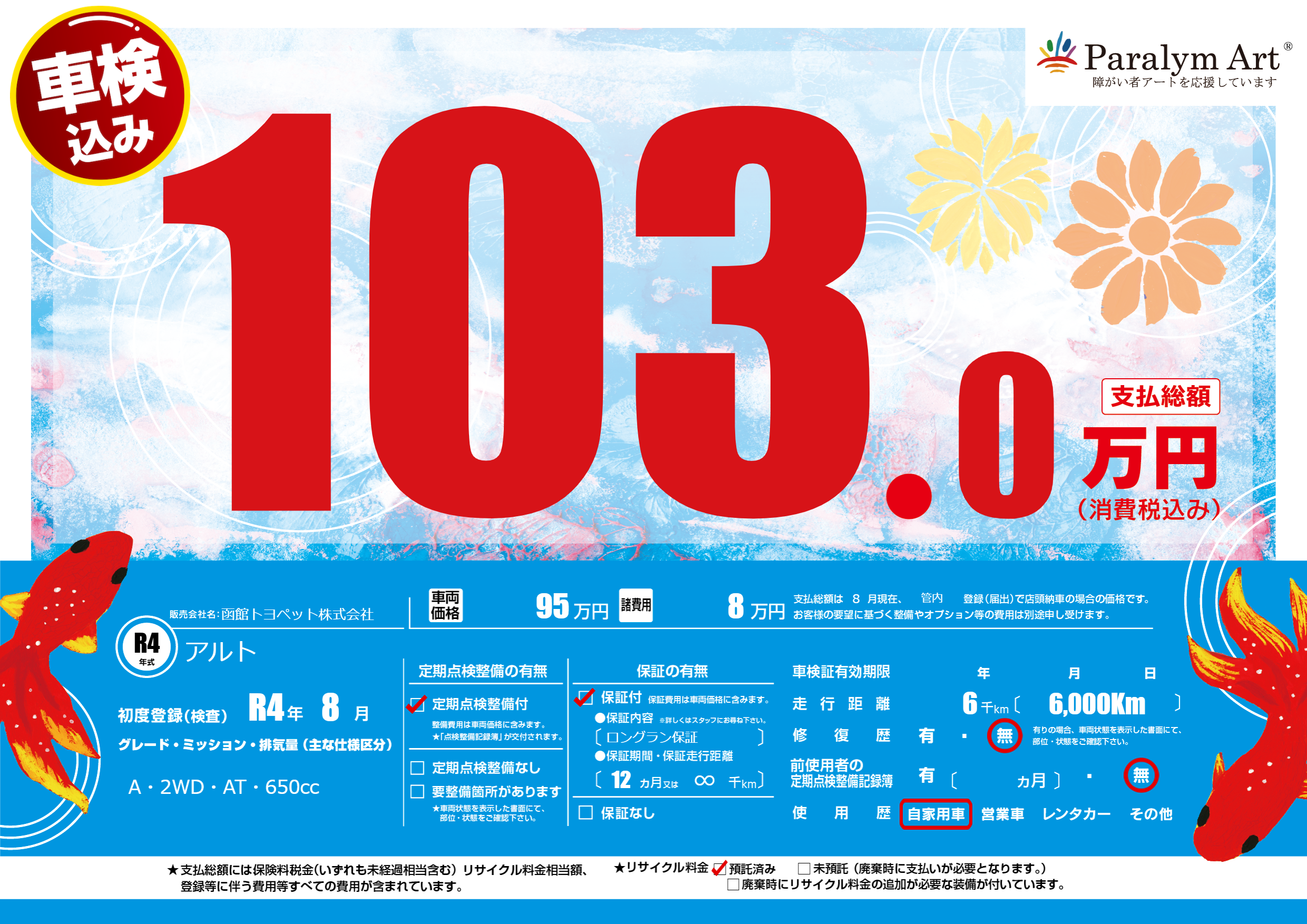 | 走行キロ | 0.6万km | 初年度登録 | R4年8月 |