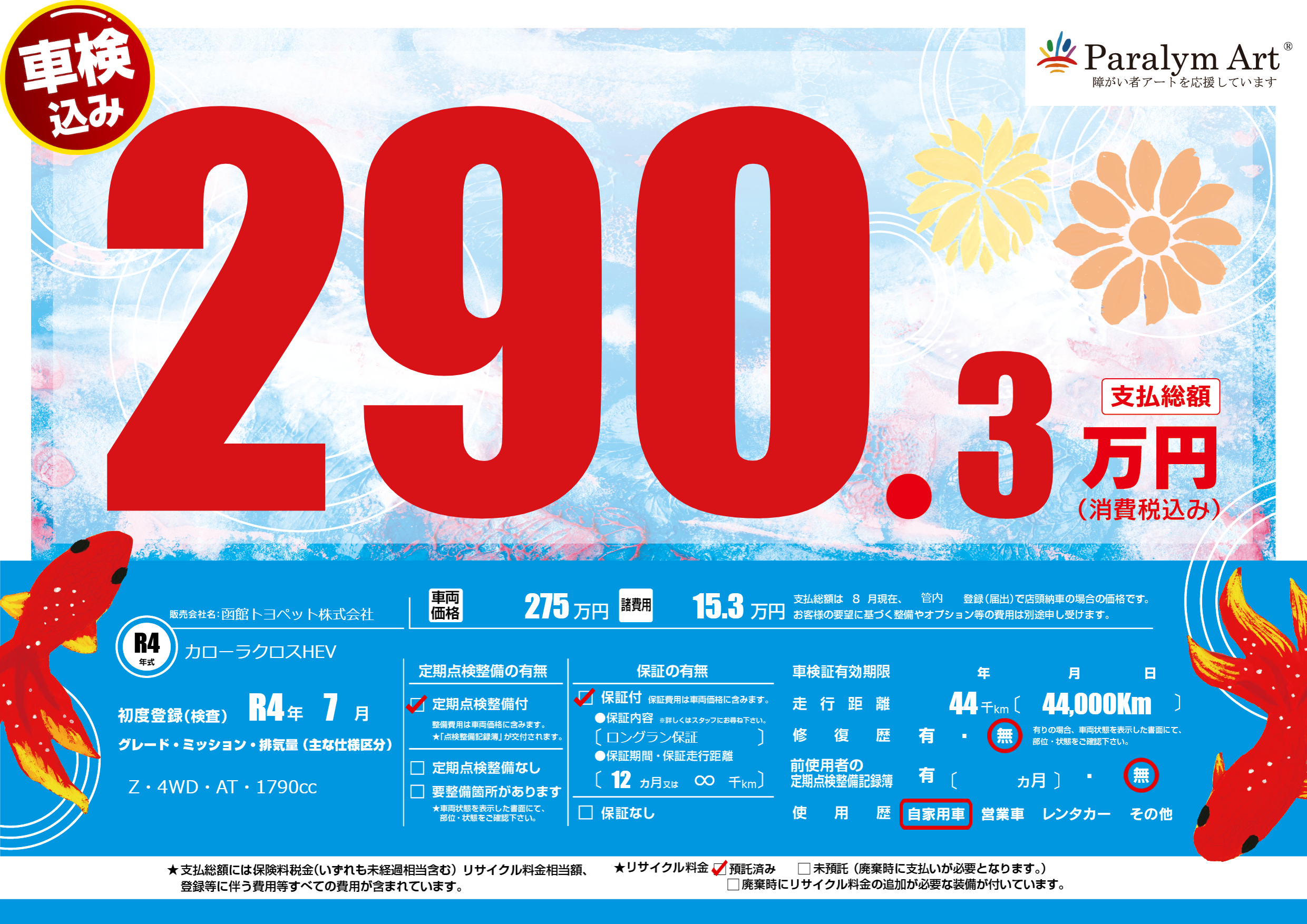 | 走行キロ | 4.4万km | 初年度登録 | R4年7月 |