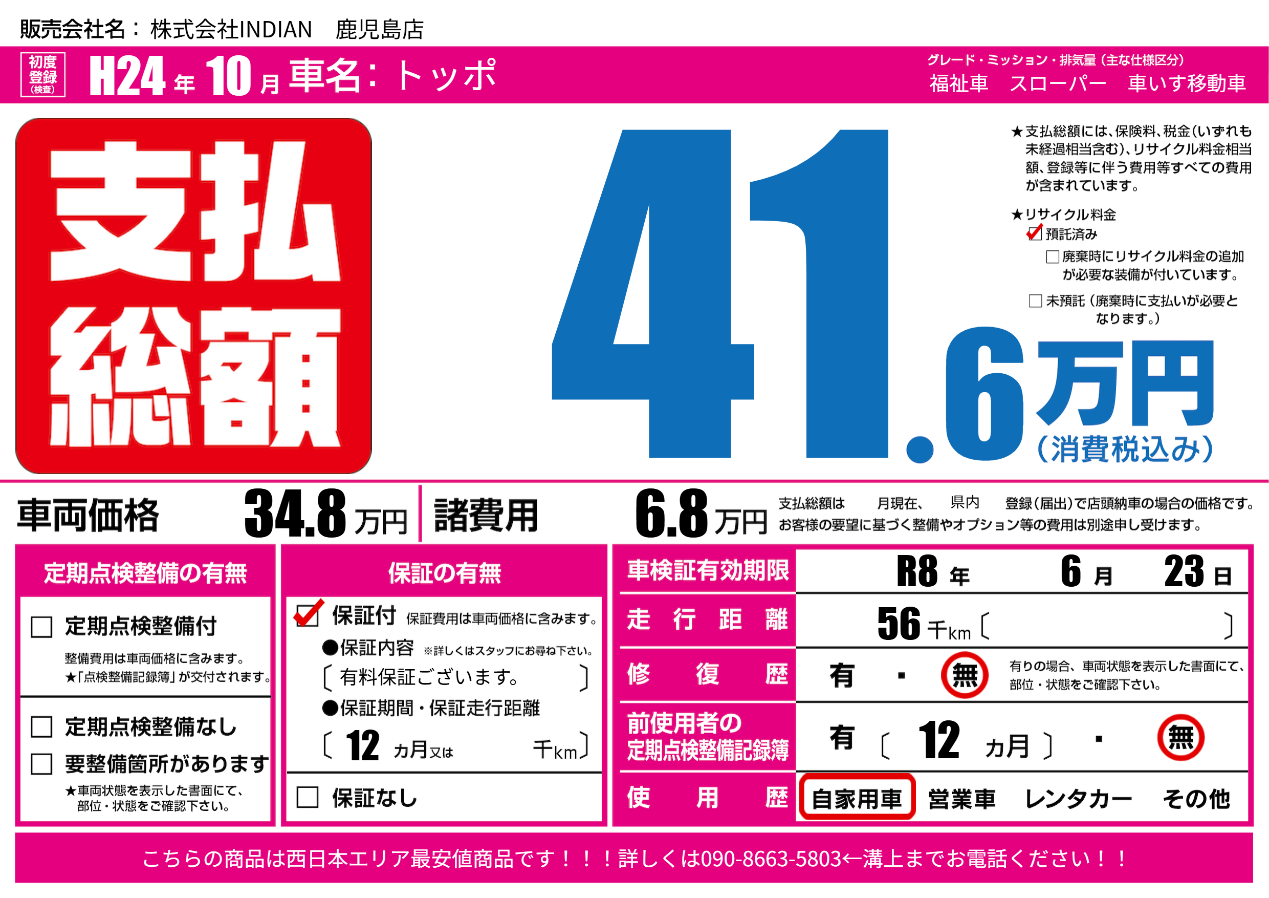 | 車名 | トッポ | グレード ミッション 排気量 |