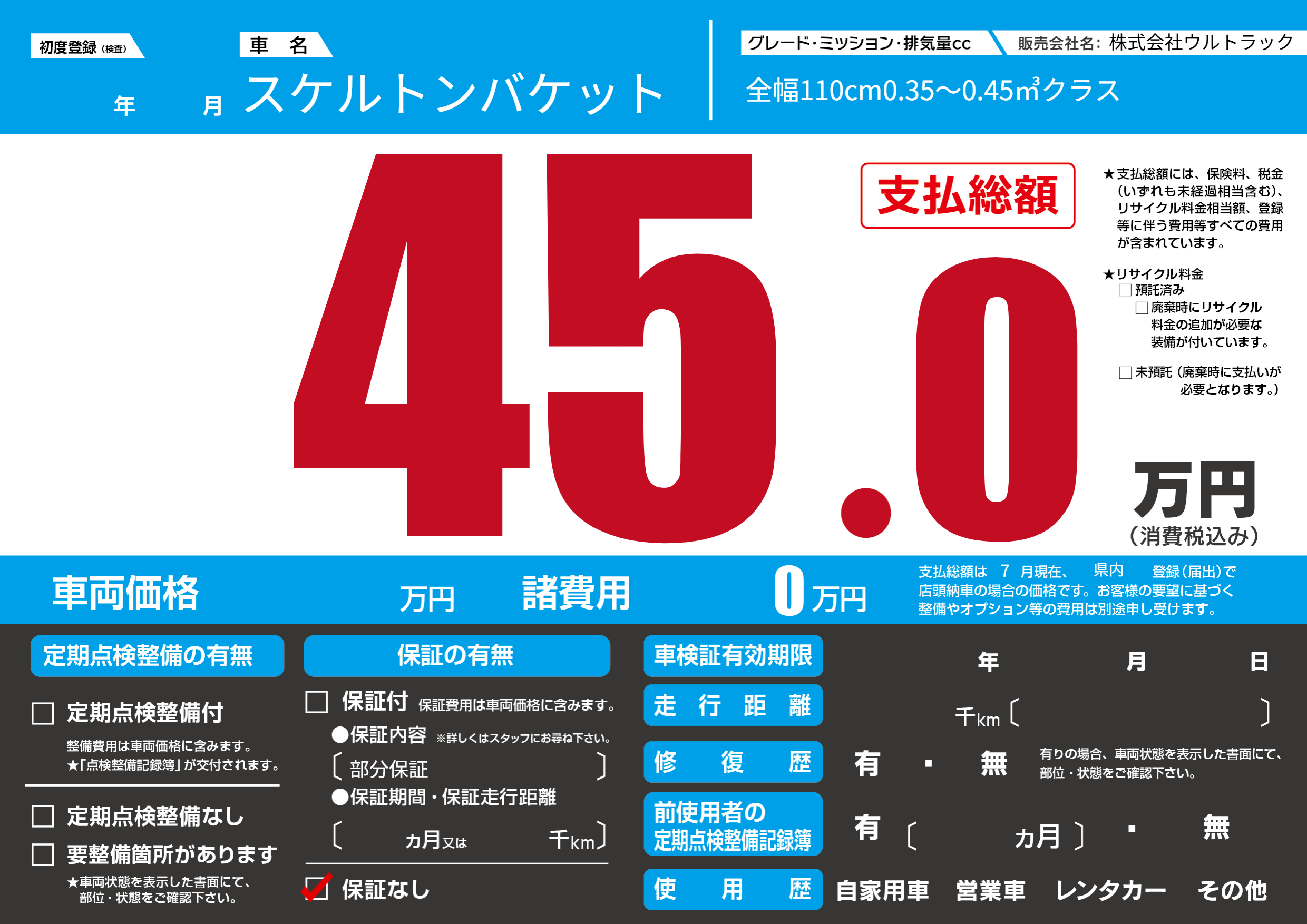 保証なし 保証内容(部分保証) ---ヶ月または()千kmまで |