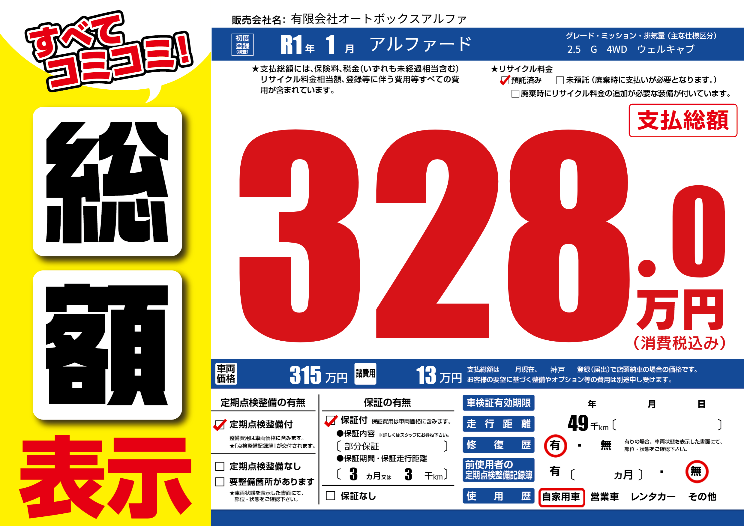 | 車名 | アルファード | グレード ミッション 排気量 |