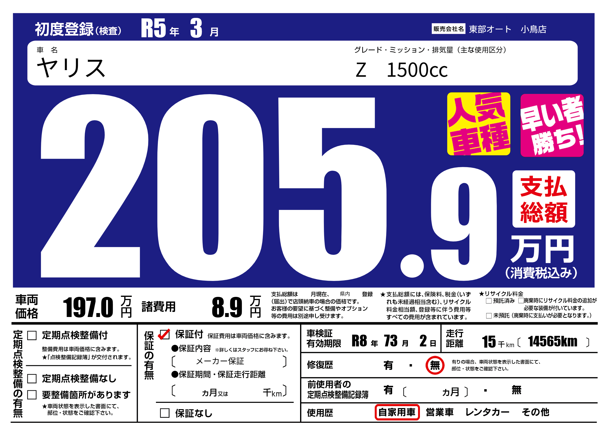 保証付き 保証内容( メーカー保証) ---ヶ月または()千kmまで |