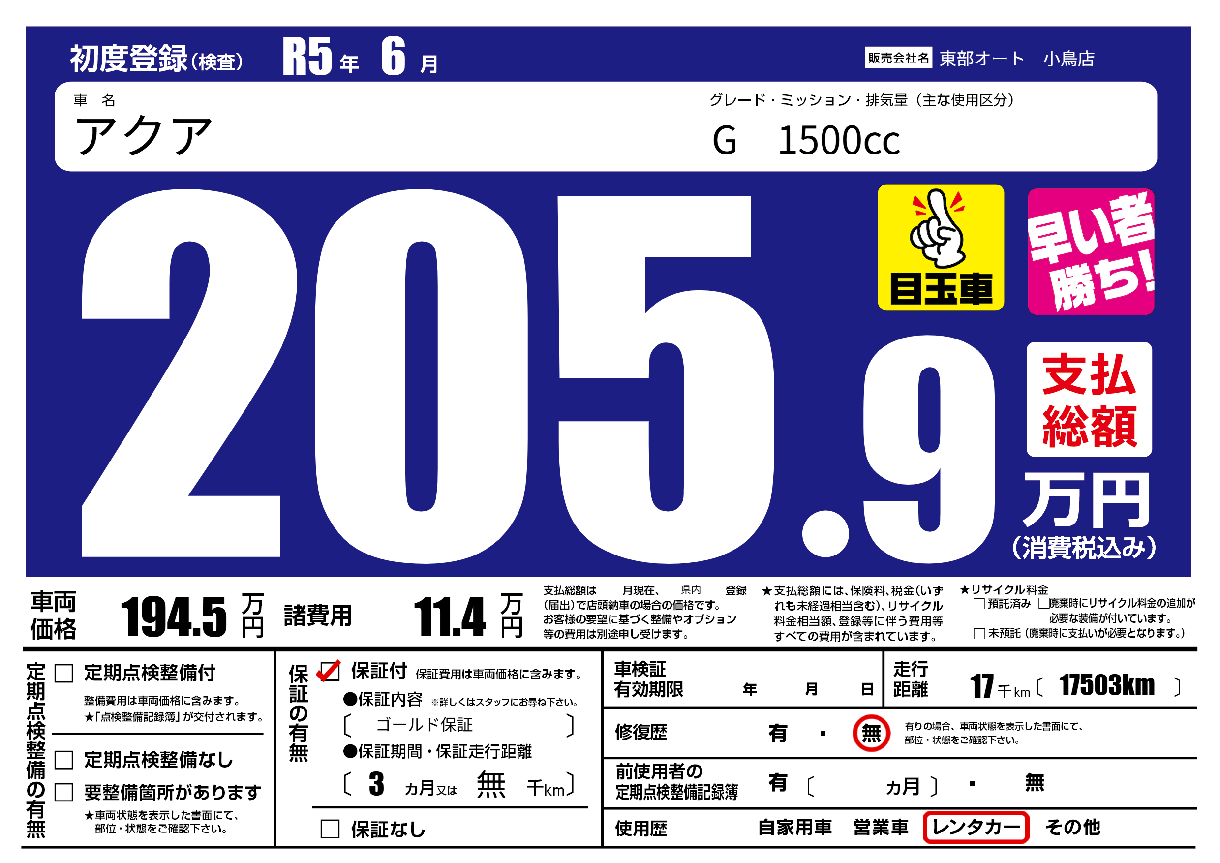 保証付き 保証内容( ゴールド保証) 3ヶ月または(無)千kmまで |