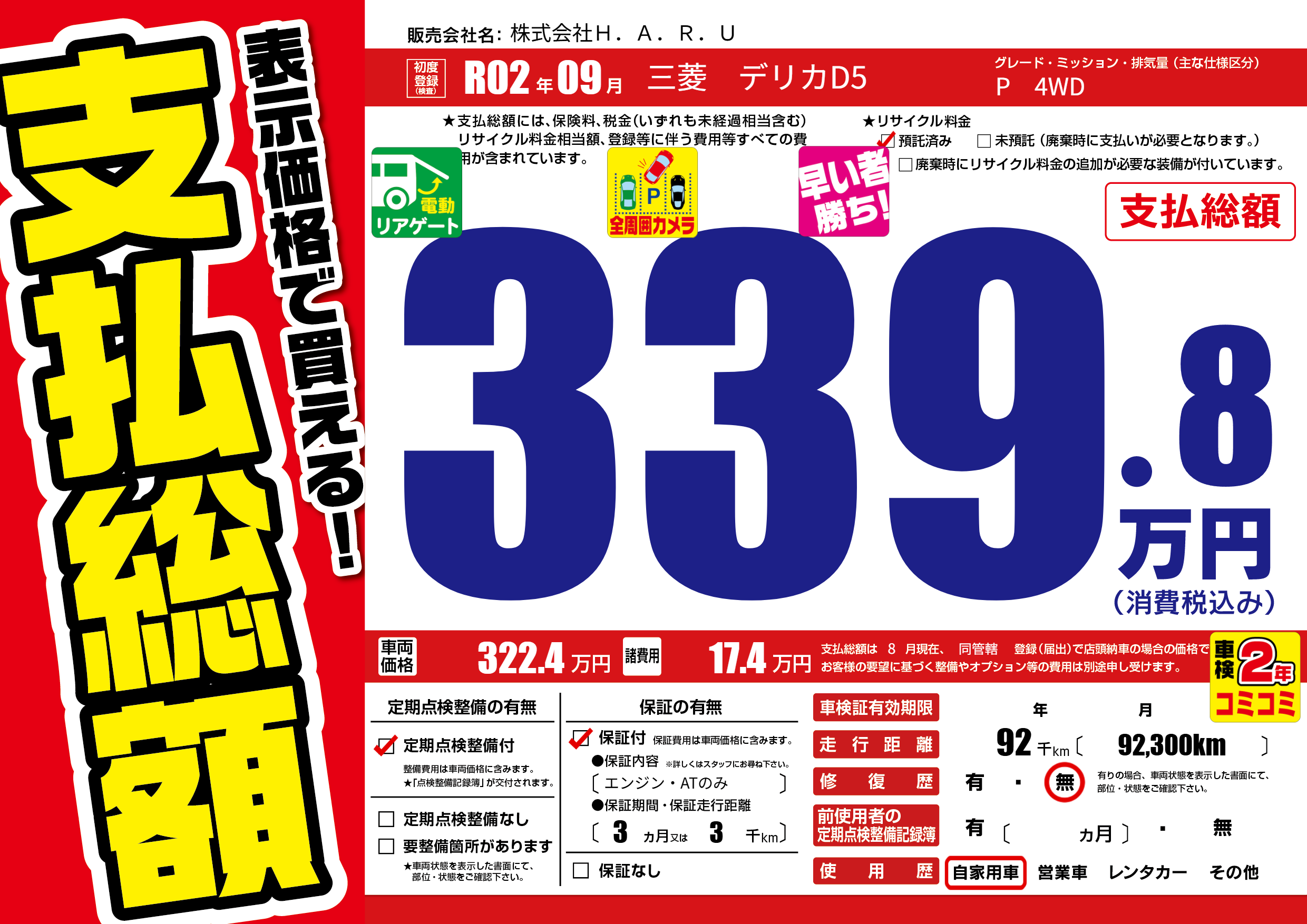 保証内容(エンジン・ATのみ) 3ヶ月または3千km