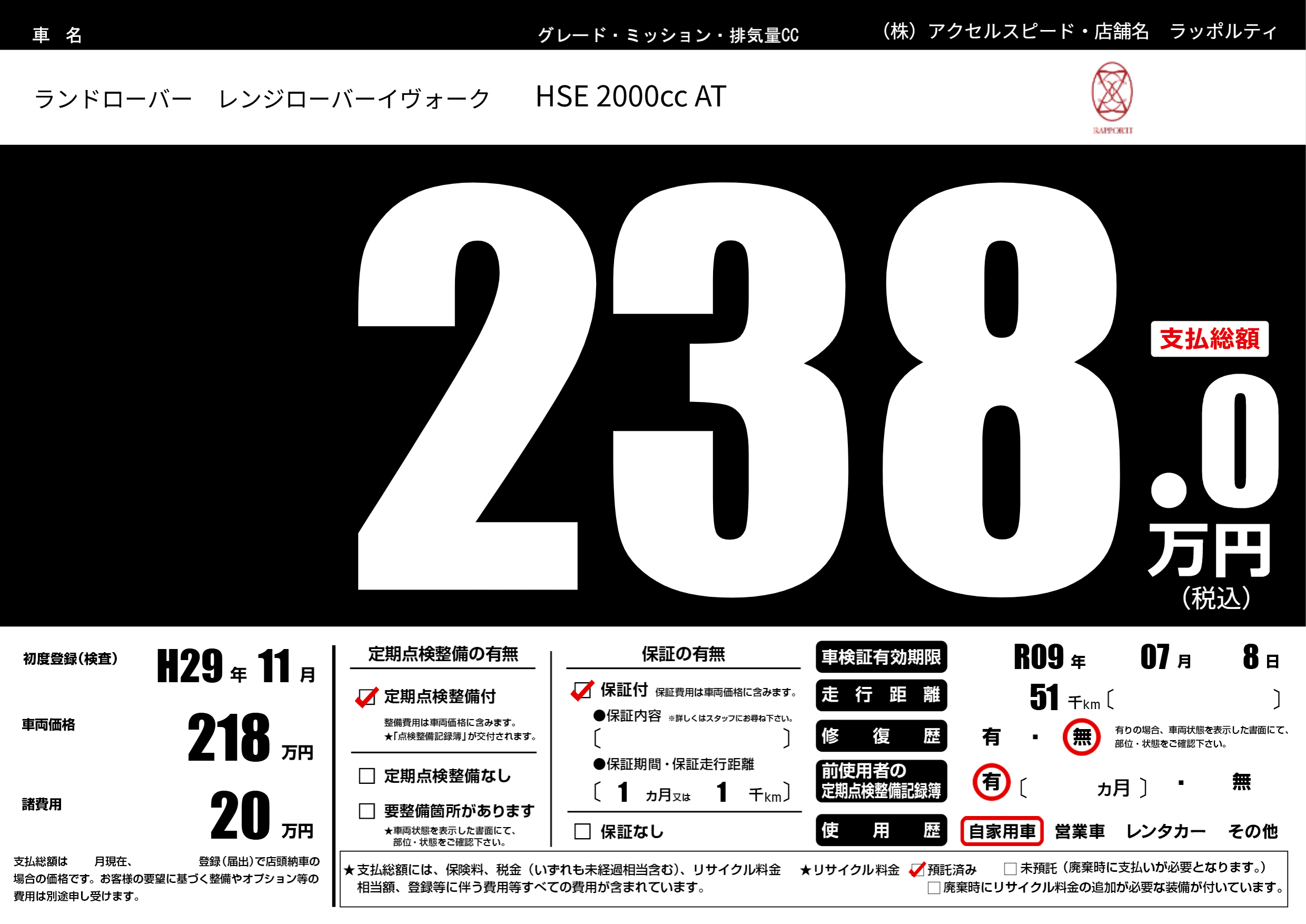 なし | 車検制限 | R09年07月8月 |