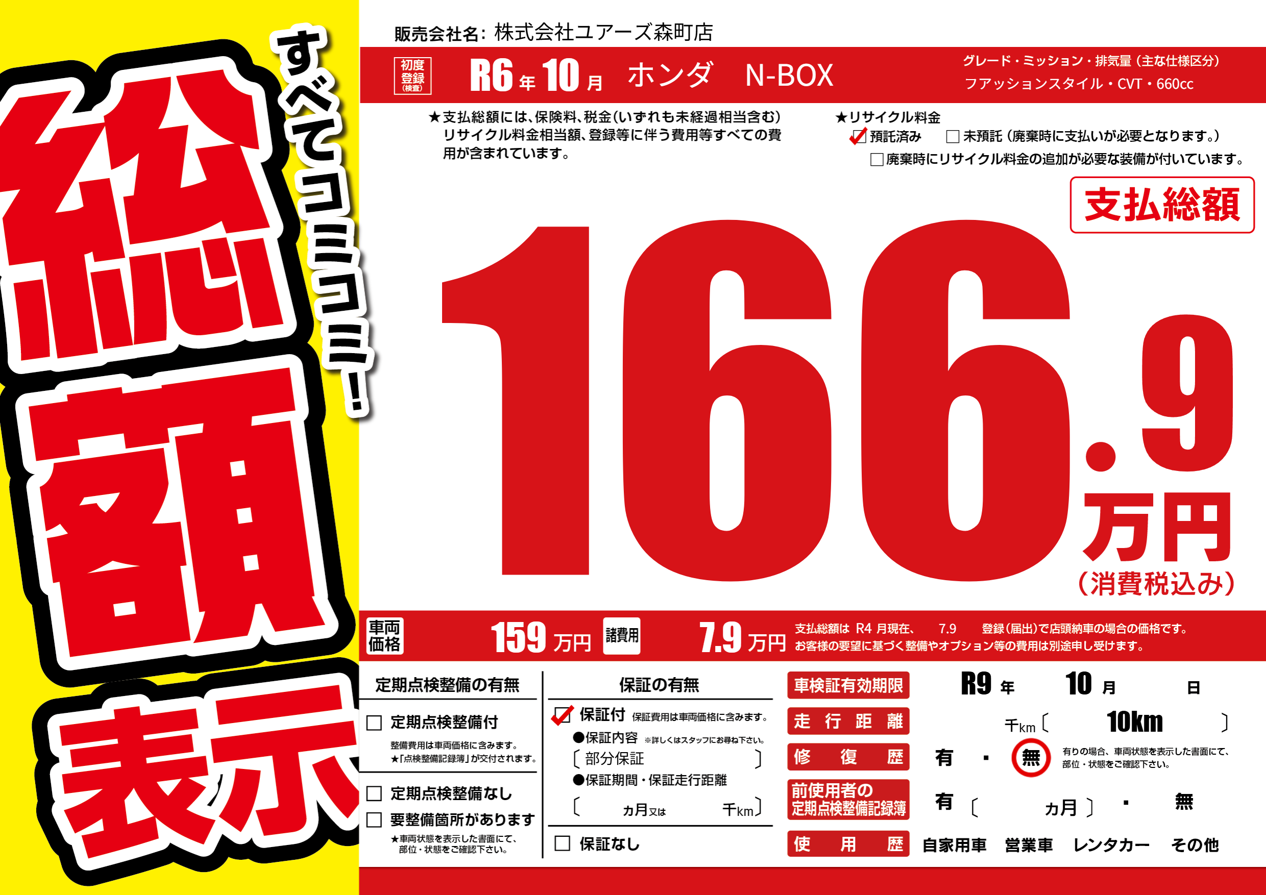 | 走行キロ | - | 初年度登録 | R6年10月 |