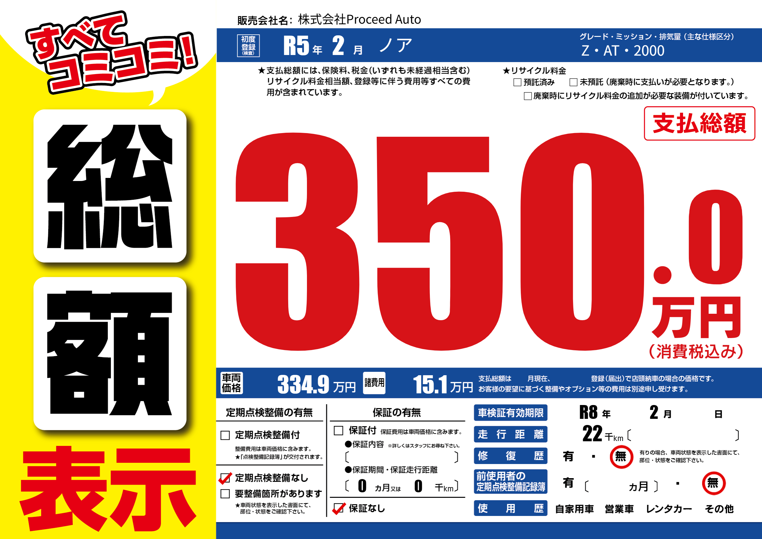 | 走行キロ | 2.2万km | 初年度登録 | R5年2月 |