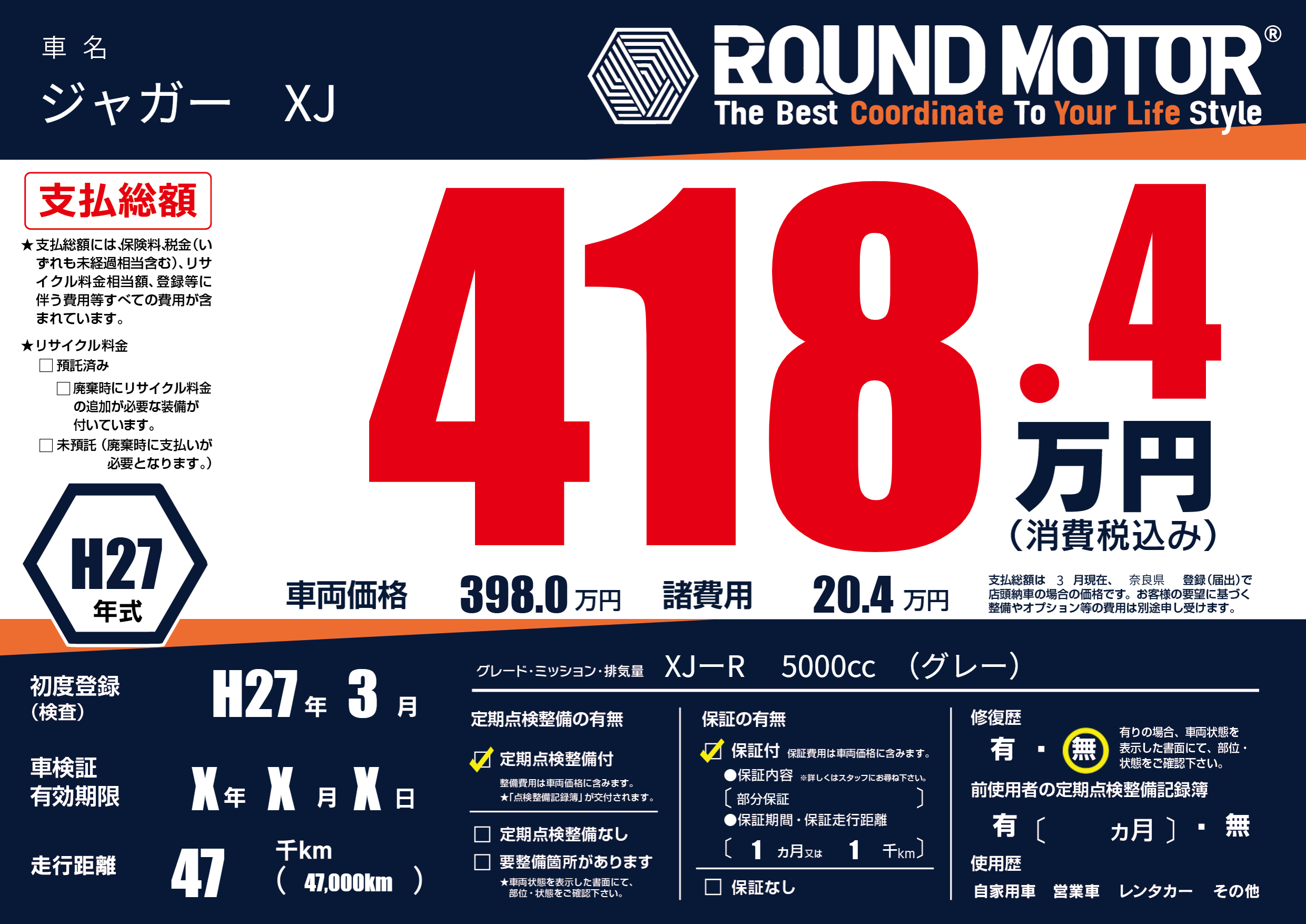 | 車名 | ジャガー XJ | グレード ミッション 排気量 |