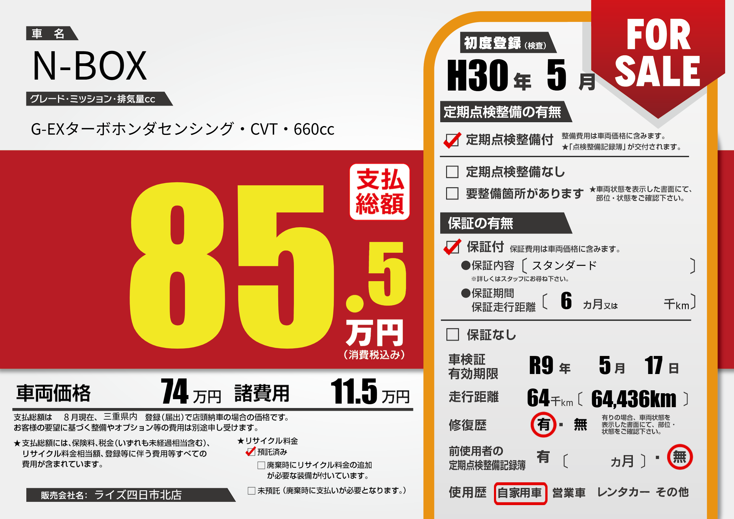 なし | 車検制限 | R9年5月17月 |