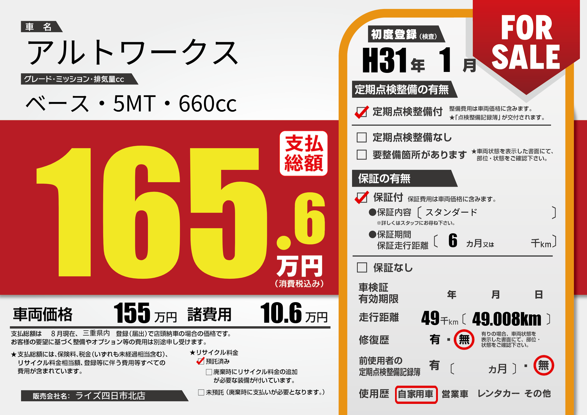 | 走行キロ | 4.9万km | ||