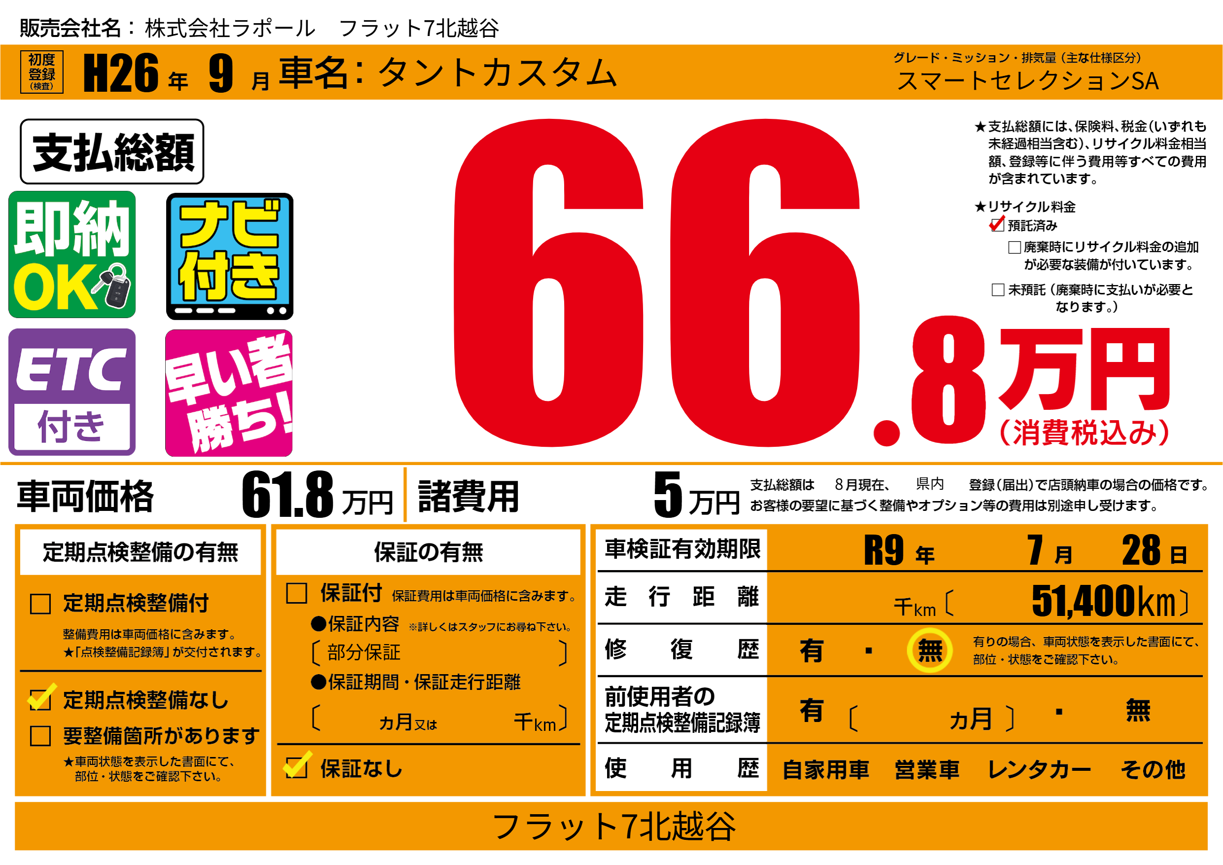 なし | 車検制限 | R9年7月28月 |