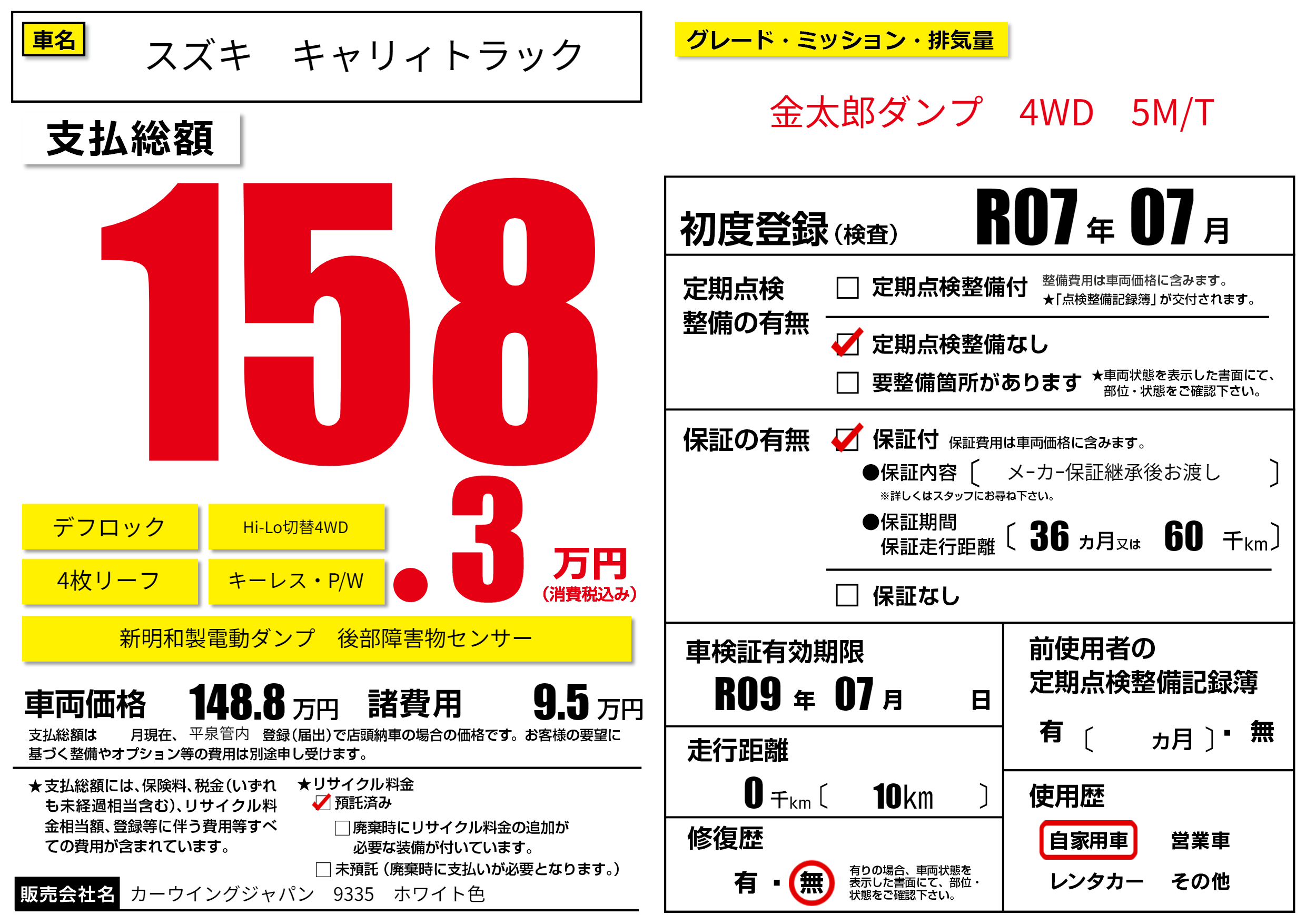 なし | 車検制限 | R09年07月---月 |