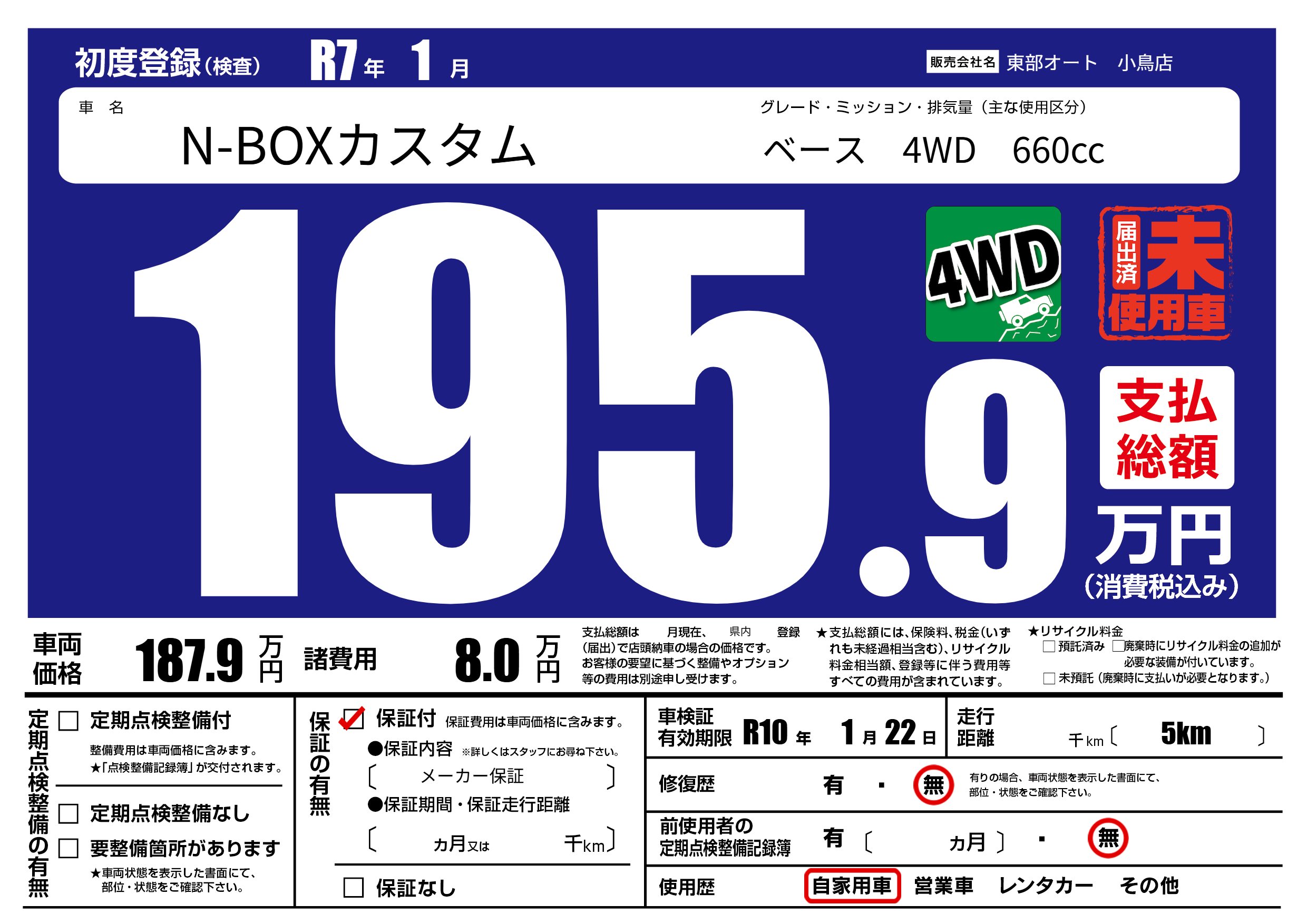 | 車名 | N-BOXカスタム | グレード ミッション 排気量 |