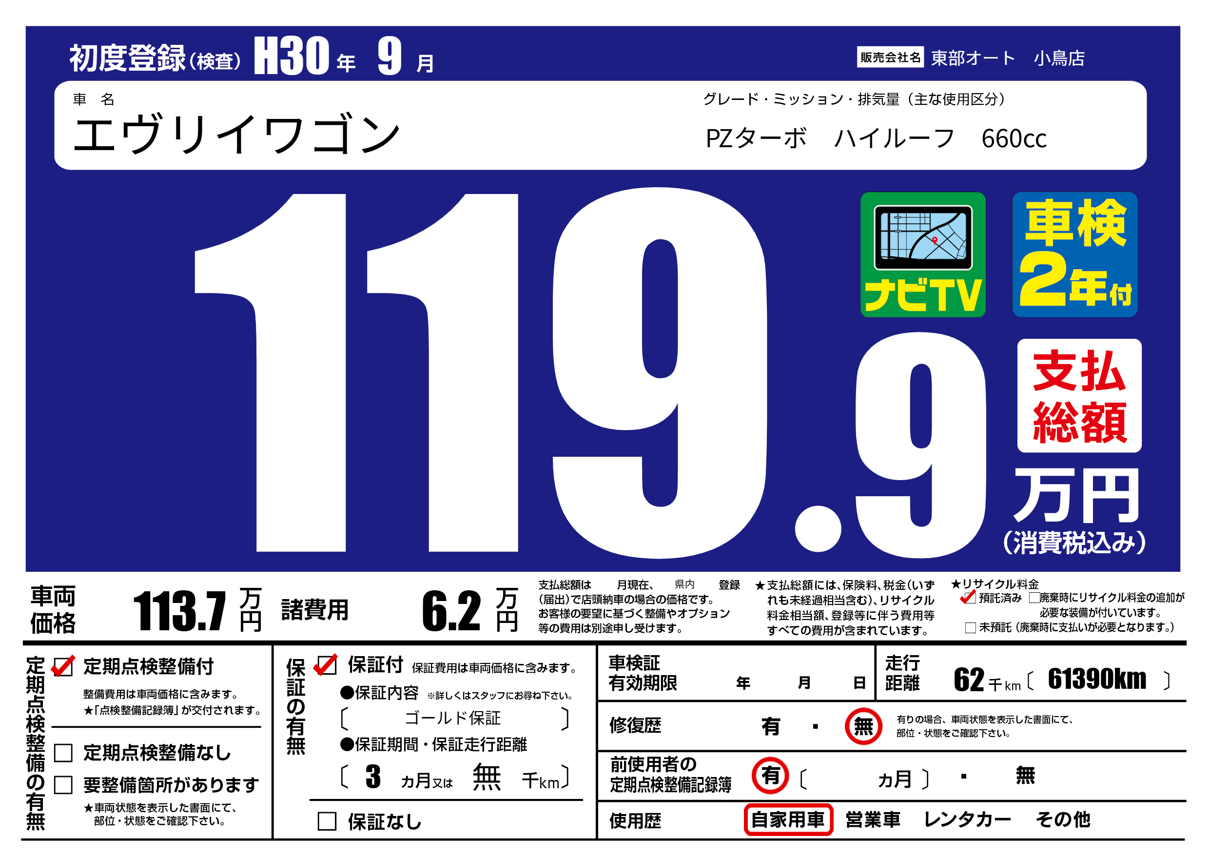 | 定期点検整備 | 定期点検整備あり | ||