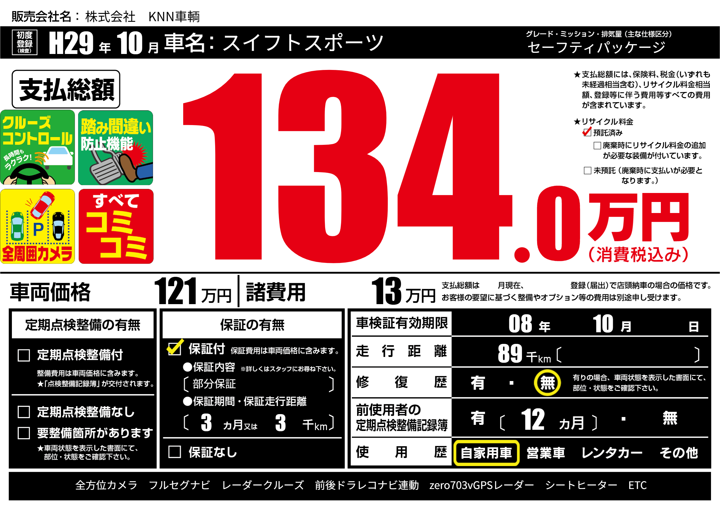 | 走行キロ | 8.9万km | 初年度登録 | H29年10月 |