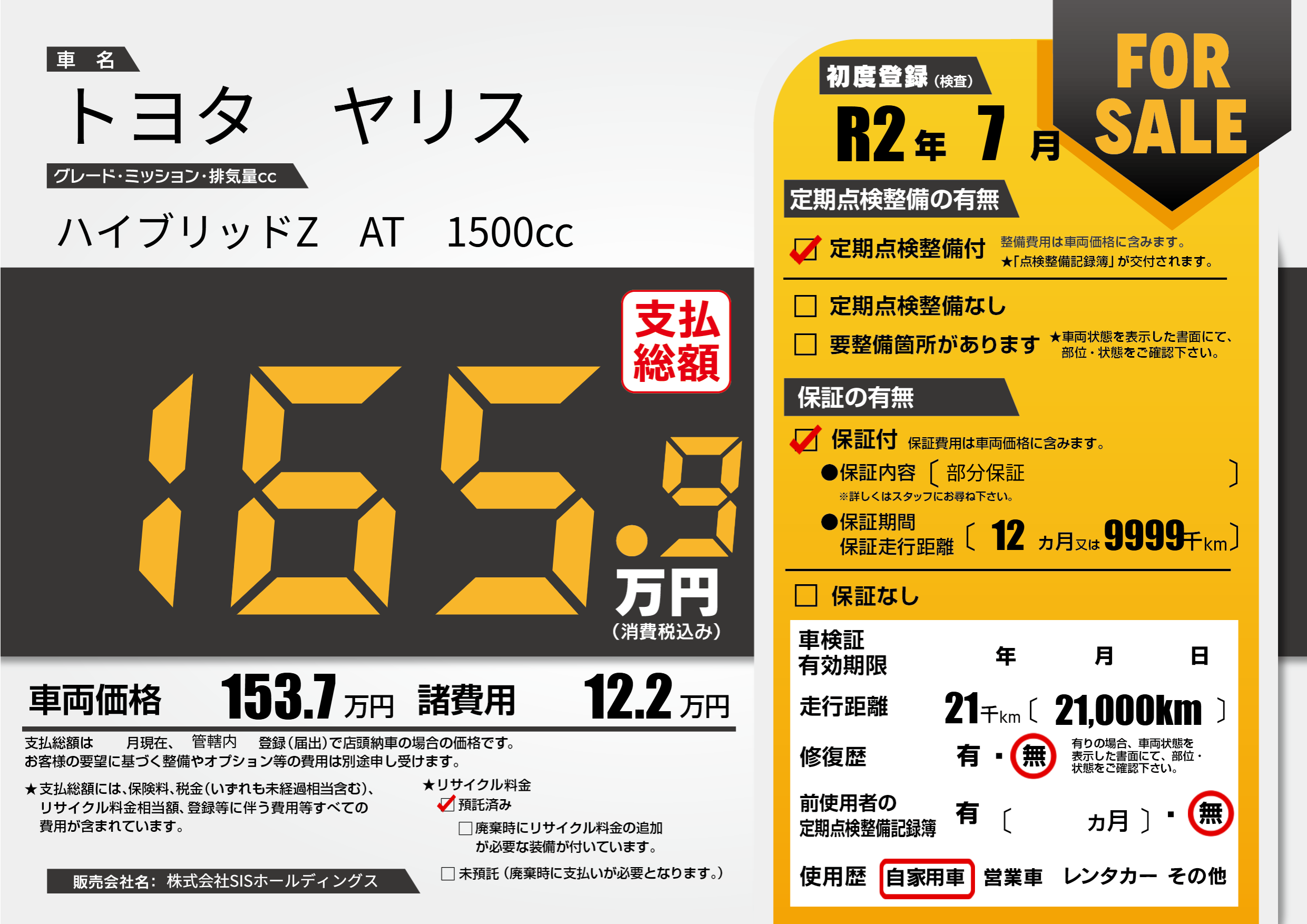 保証付き 保証内容(部分保証) 12ヶ月または(9999)千kmまで |