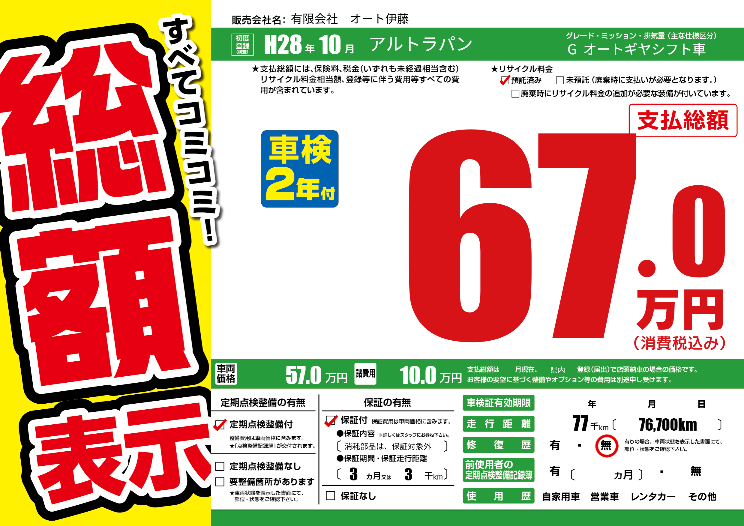 | 走行キロ | 7.7万km | ||