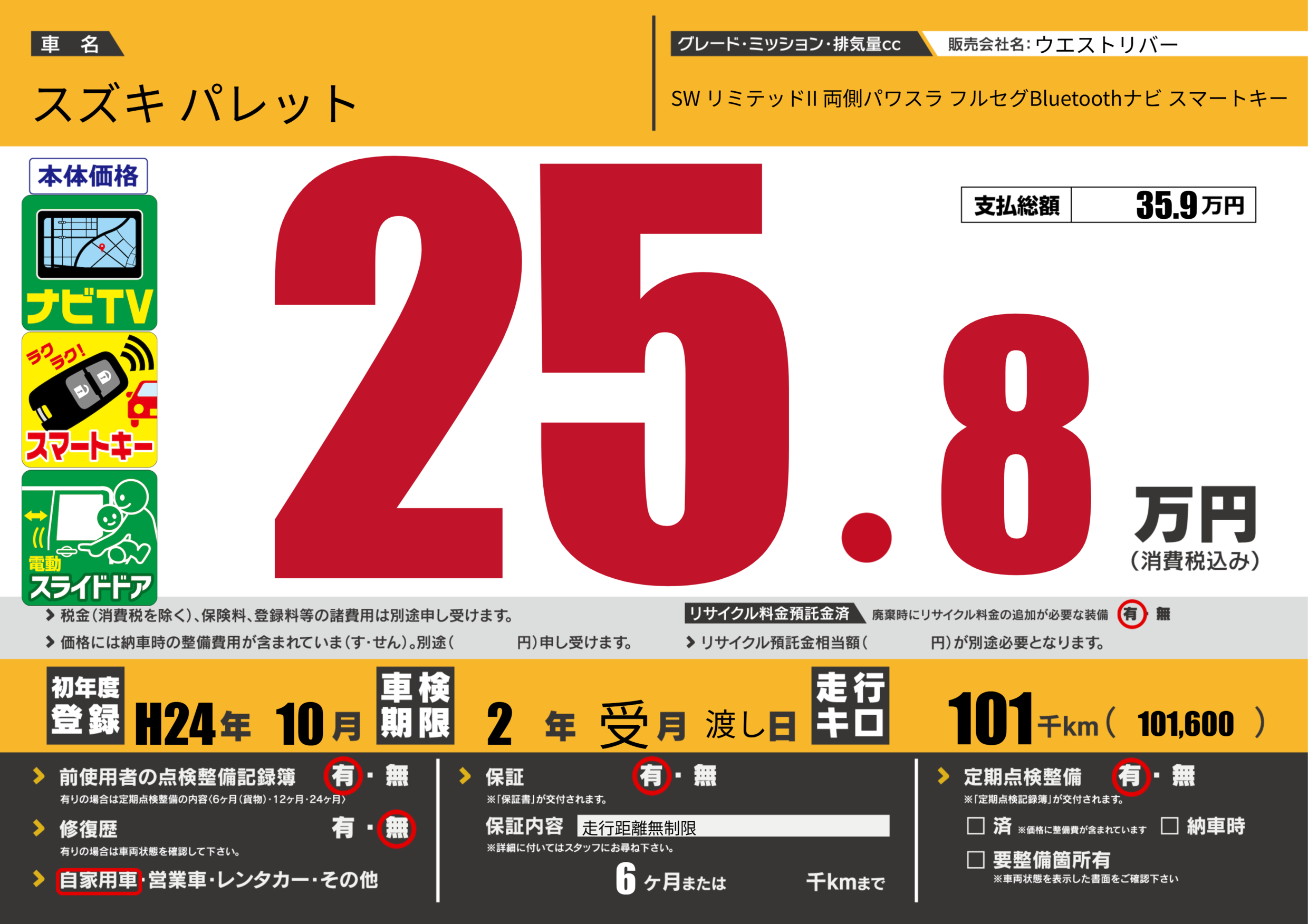 | 走行キロ | 10.1万km | 初年度登録 | H24年10月 |