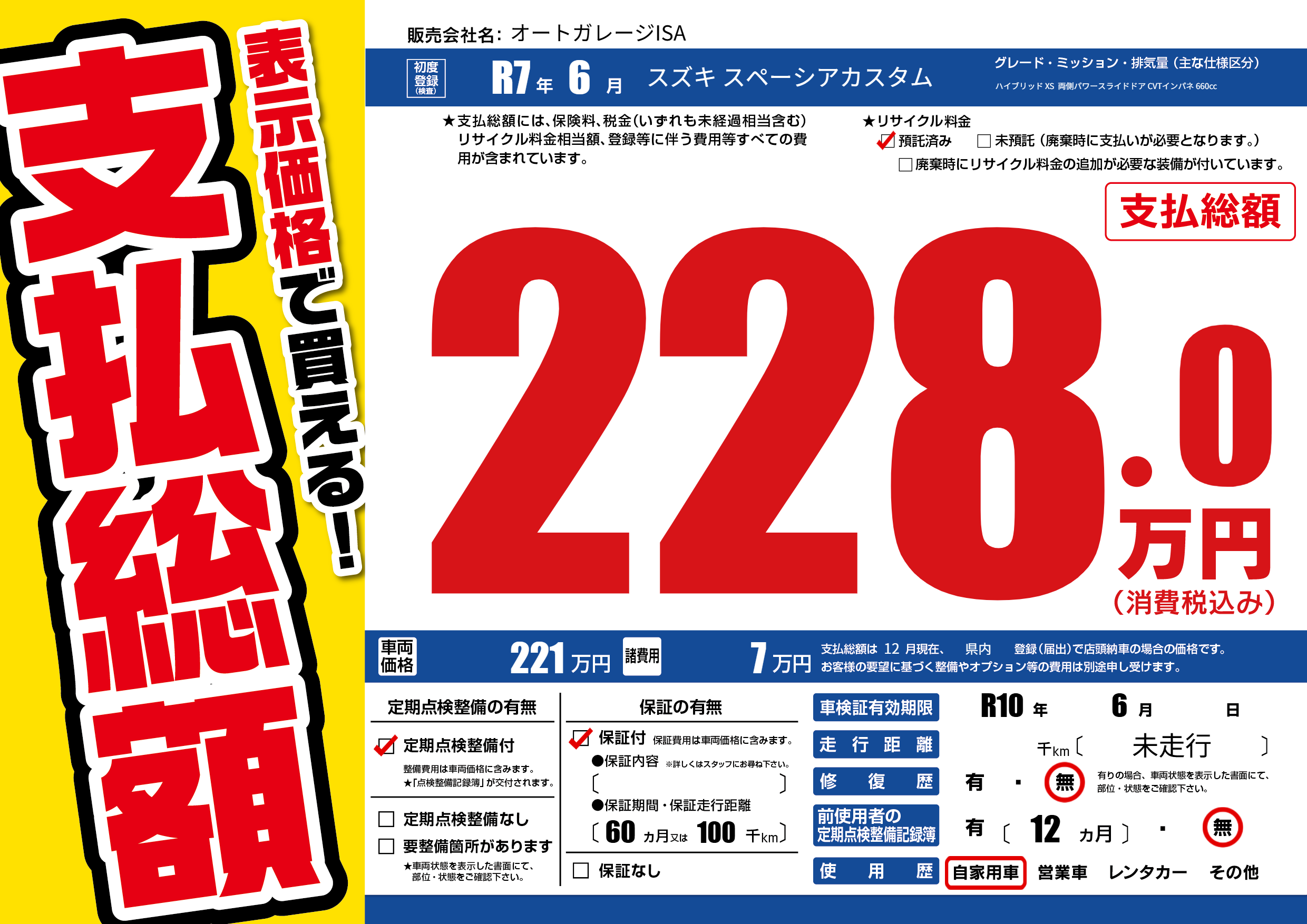 | 車検制限 | R10年 6月 - 日 | ||