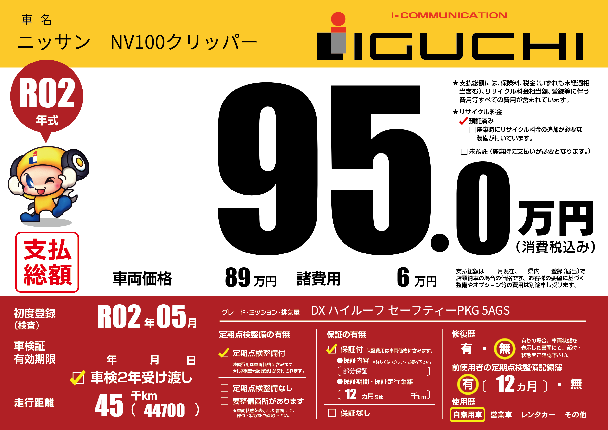 | 定期点検整備 | 定期点検整備あり | ||