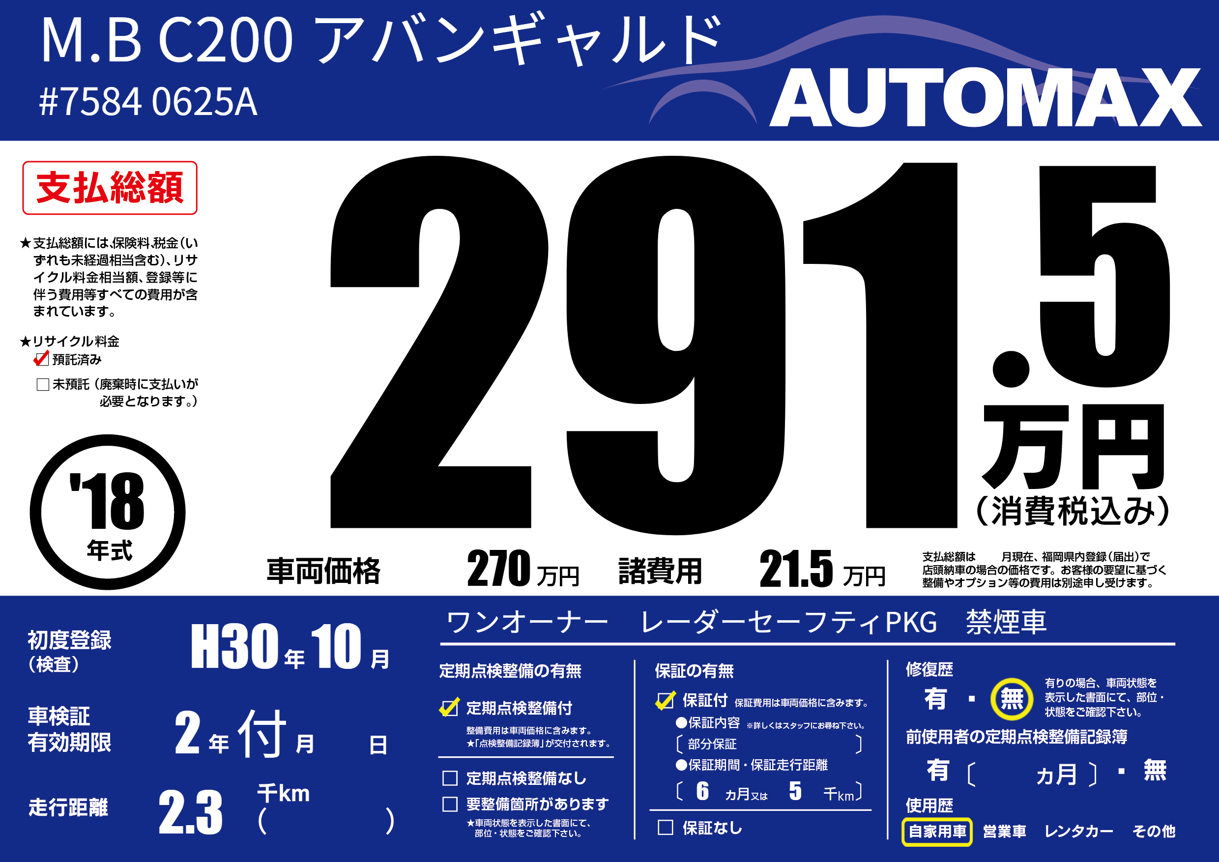 | 初年度登録 | H30年10月 | ||