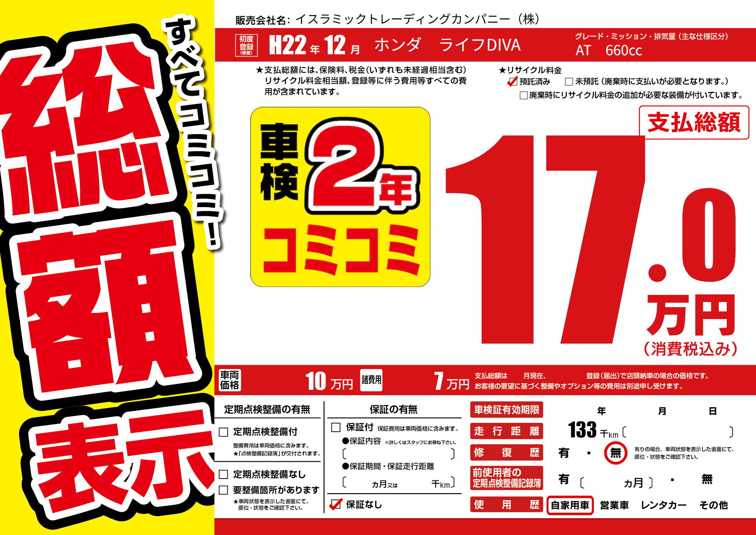 | 走行キロ | 13.3万km | ||