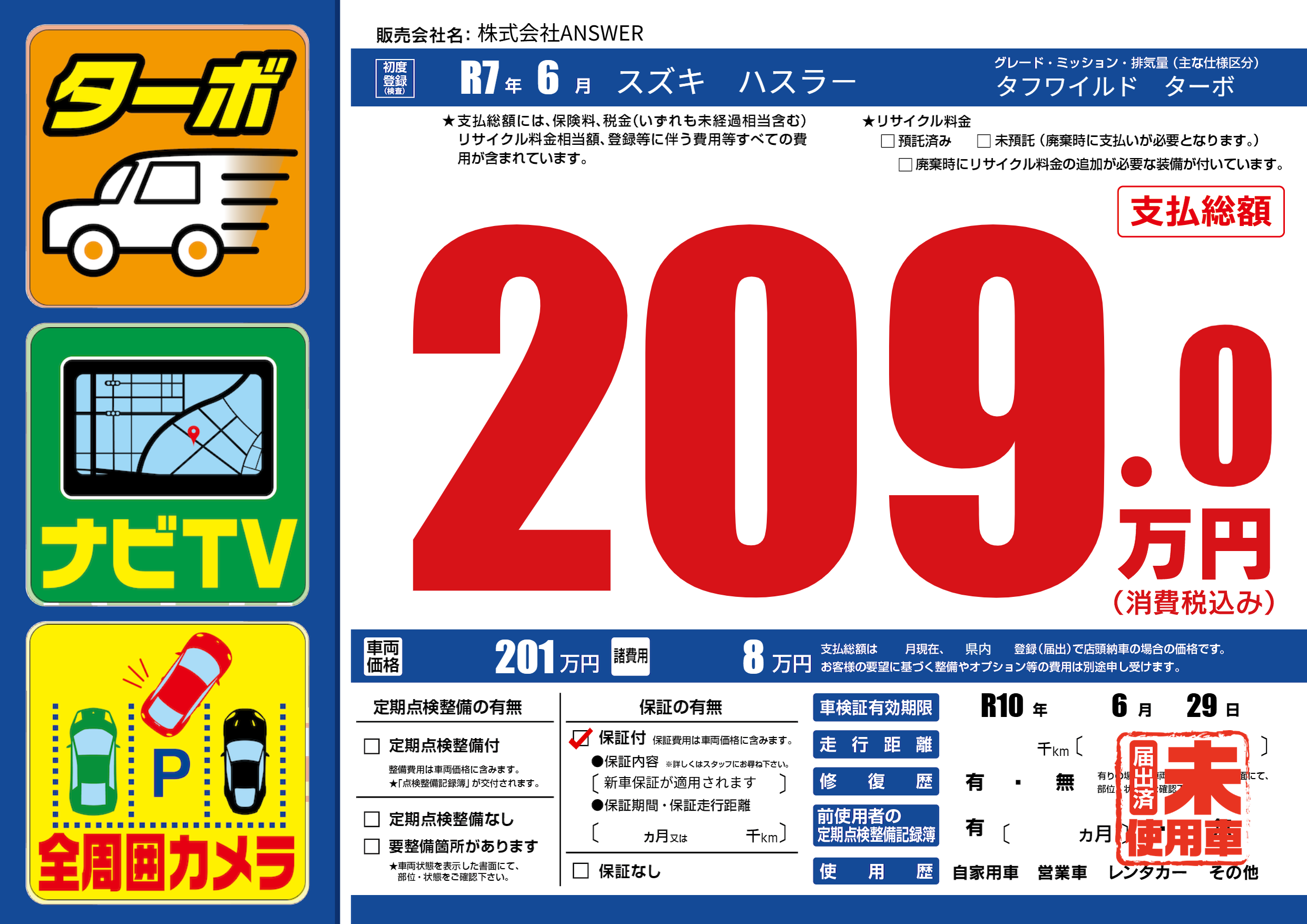 | 走行キロ | - | 初年度登録 | R7年6月 |