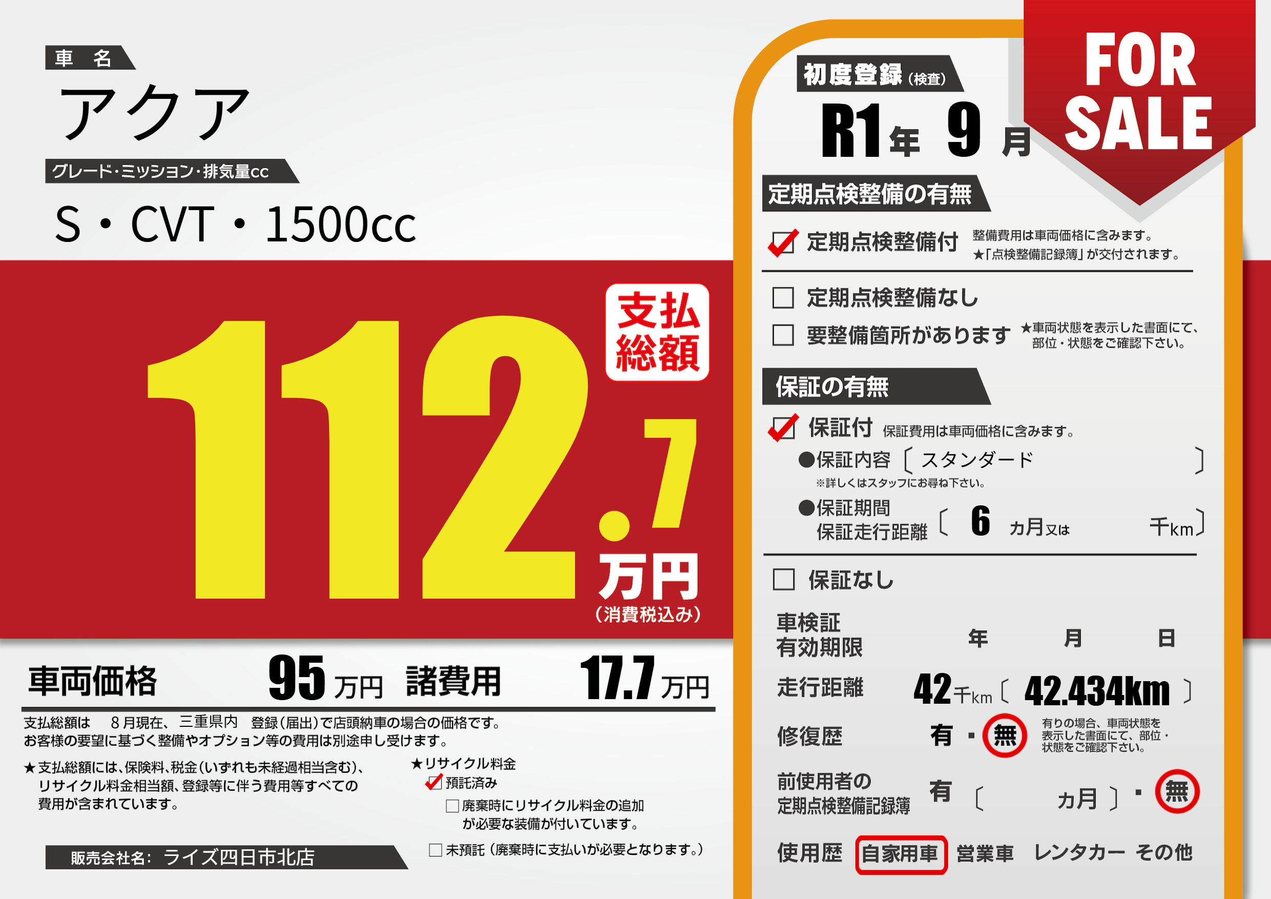 | 初年度登録 | R1年9月 | ||