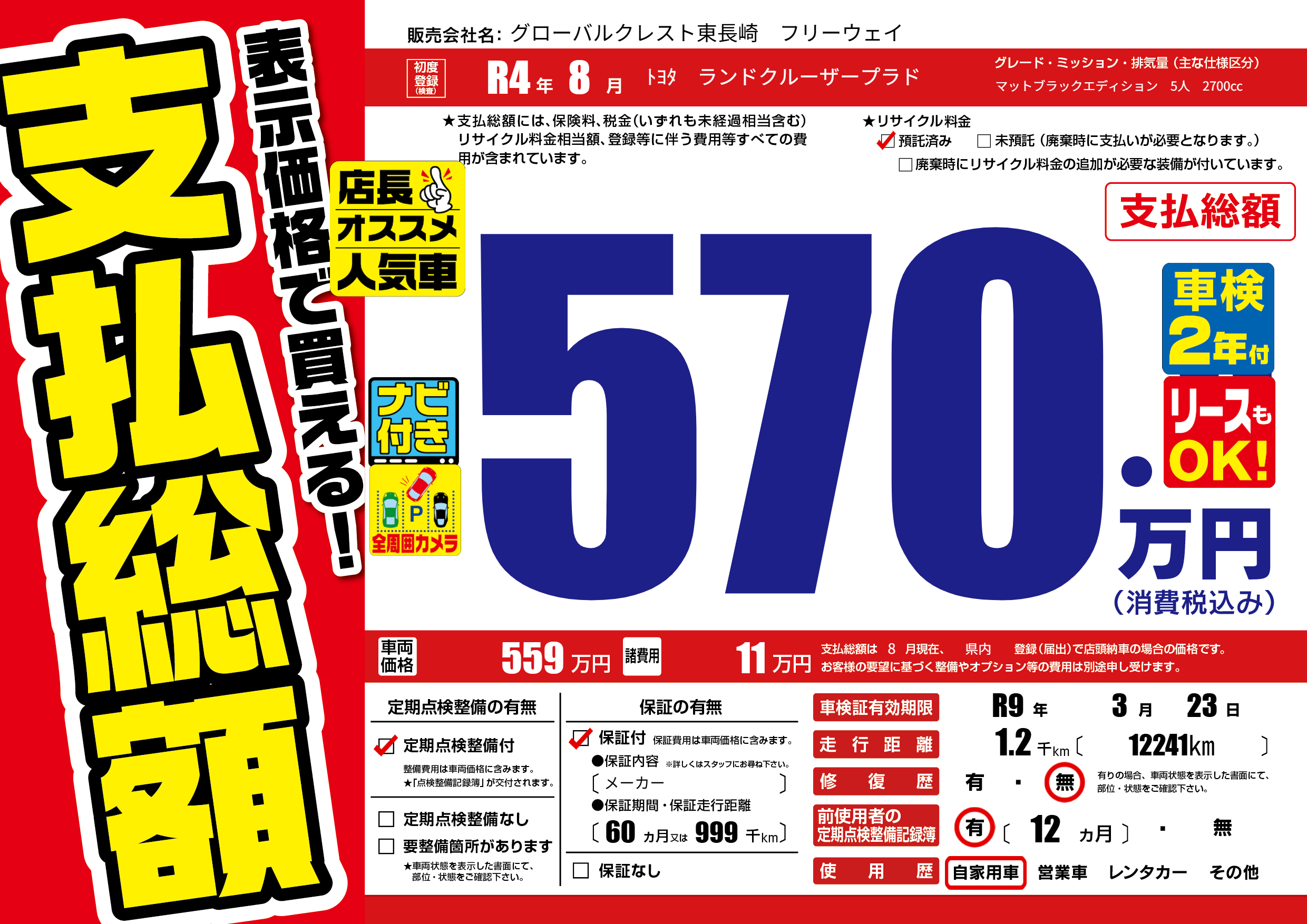 | 車名 | トヨタ ランドクルーザープラド | グレード ミッション 排気量 |