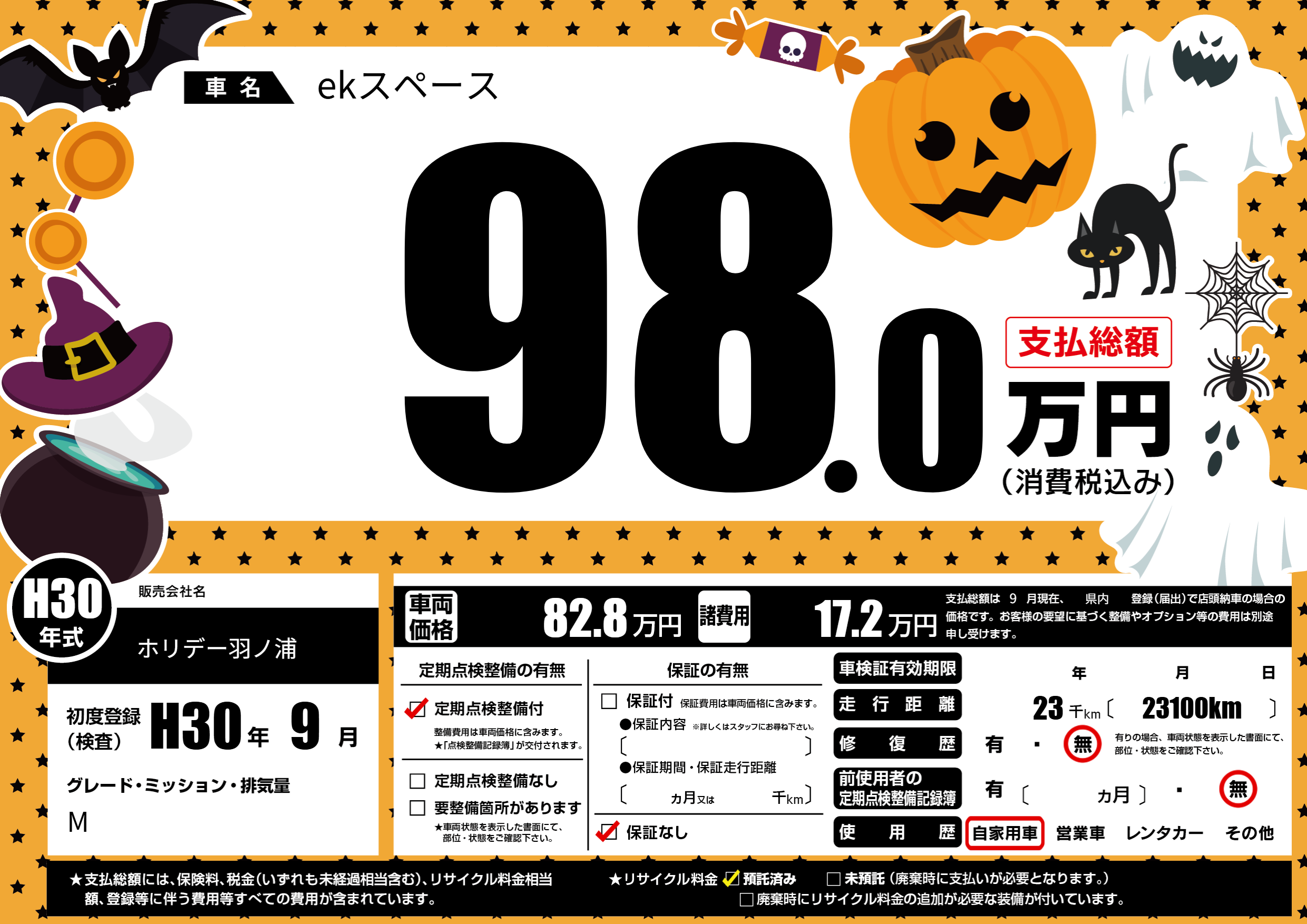 | 走行キロ | 2.3万km | 初年度登録 | H30年9月 |