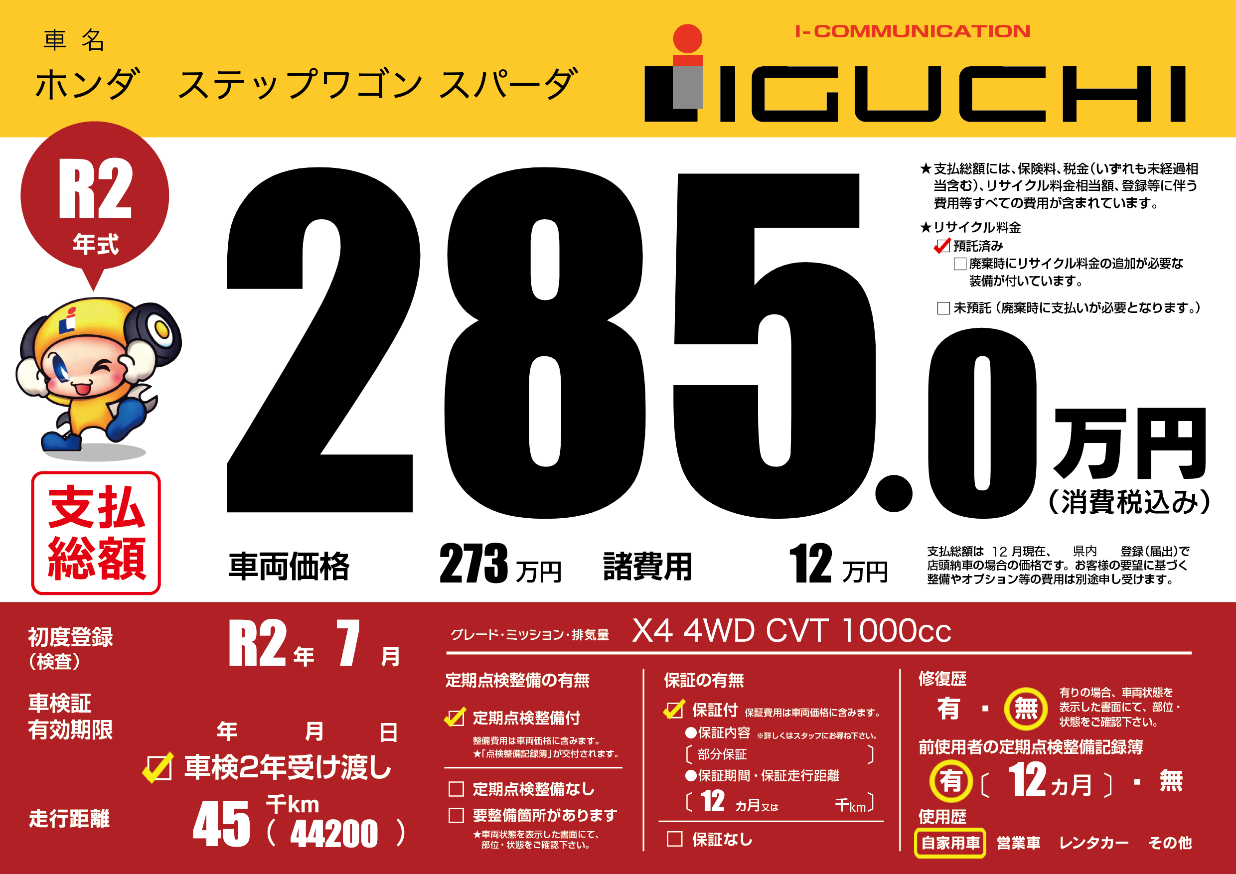 | 車名 | ホンダ ステップワゴン スパーダ | グレード ミッション 排気量 |
