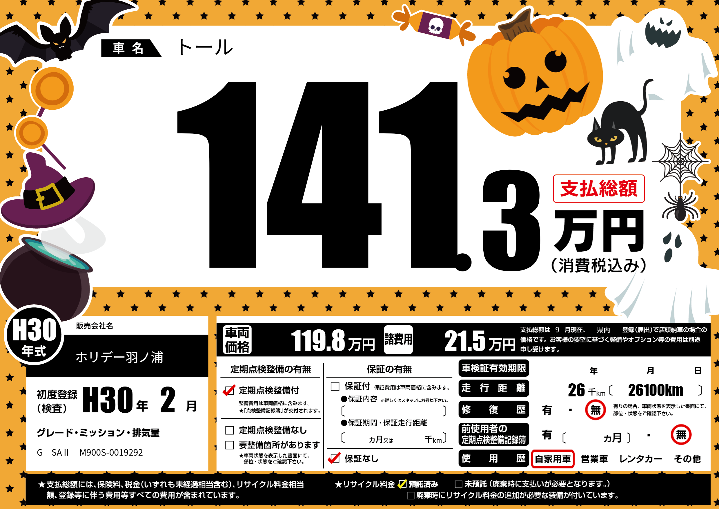| 走行キロ | 2.6万km | 初年度登録 | H30年2月 |