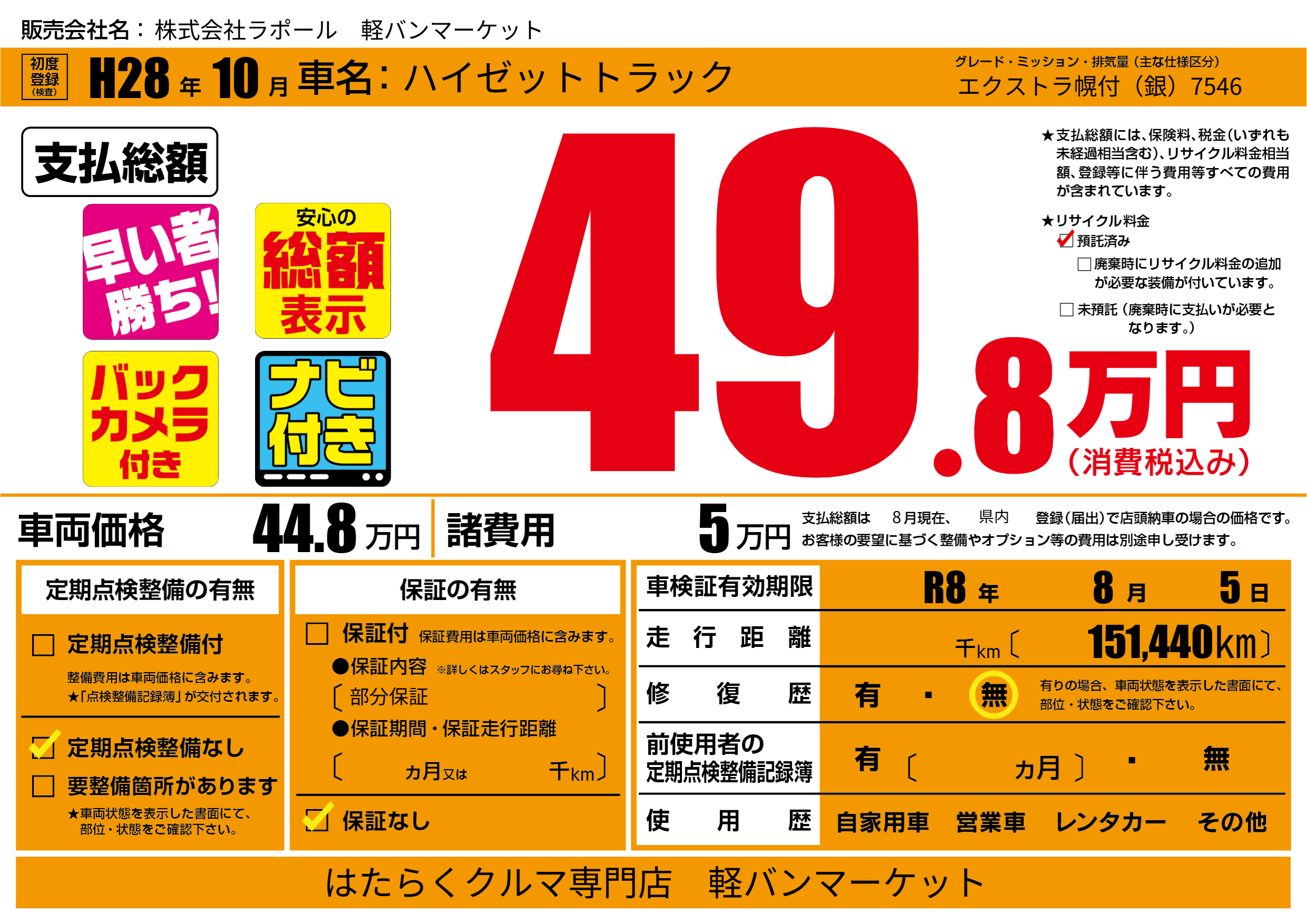 なし | 車検制限 | R8年8月5月 |