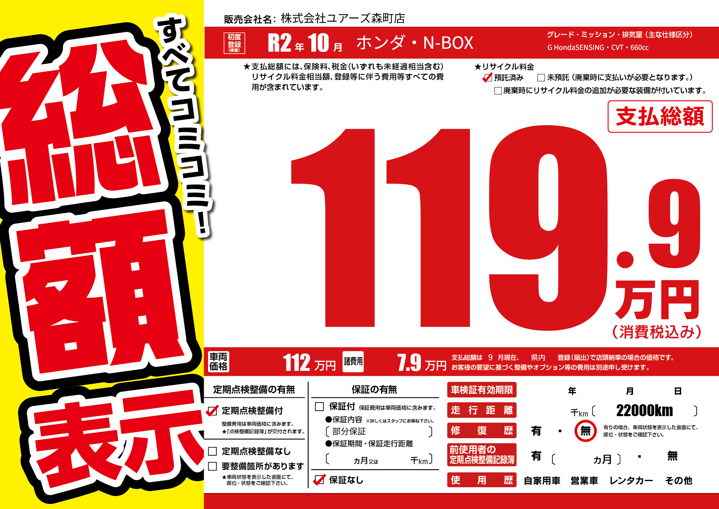 | 定期点検整備 | 定期点検整備あり | ||