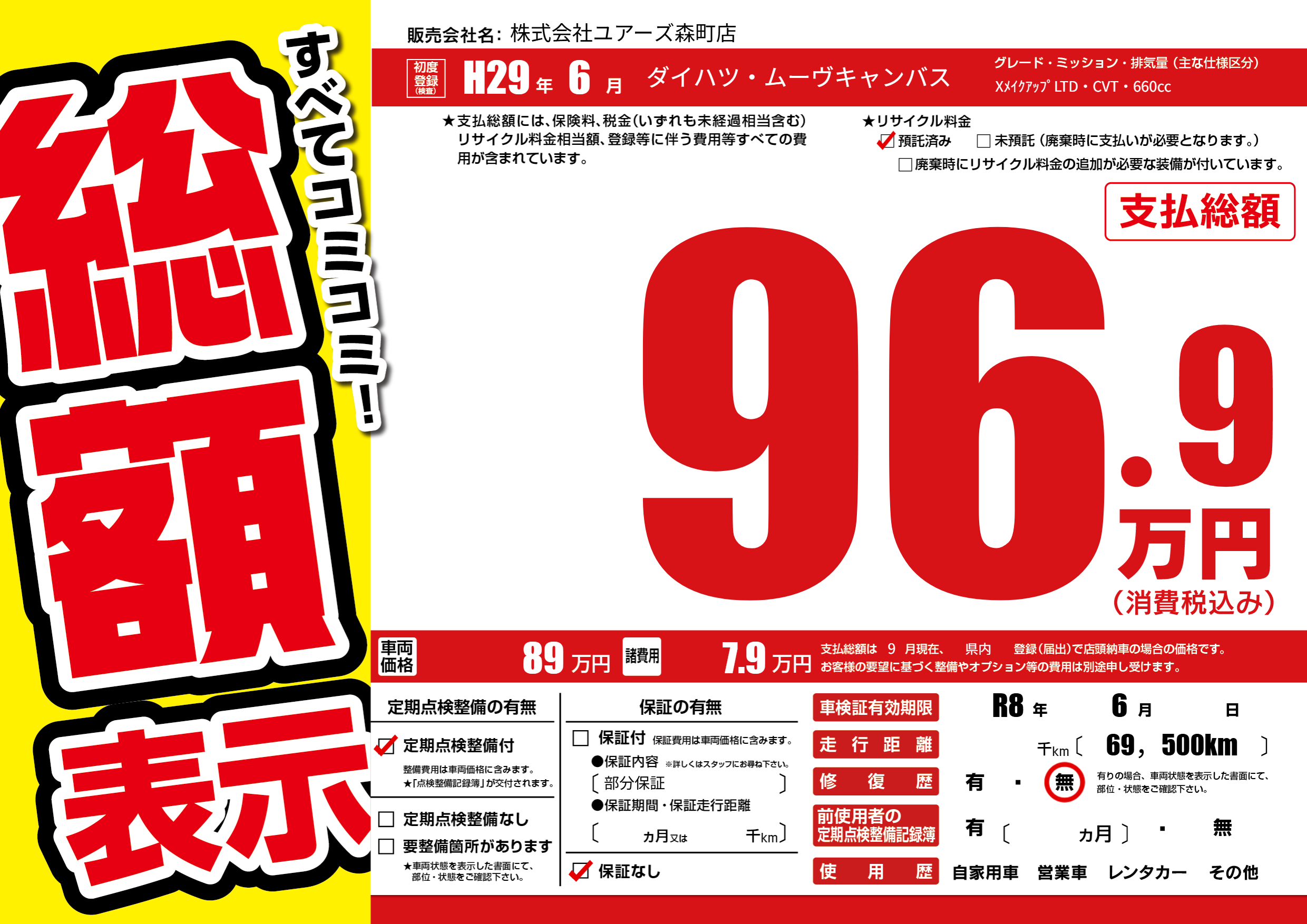 なし | 車検制限 | R8年6月---月 |