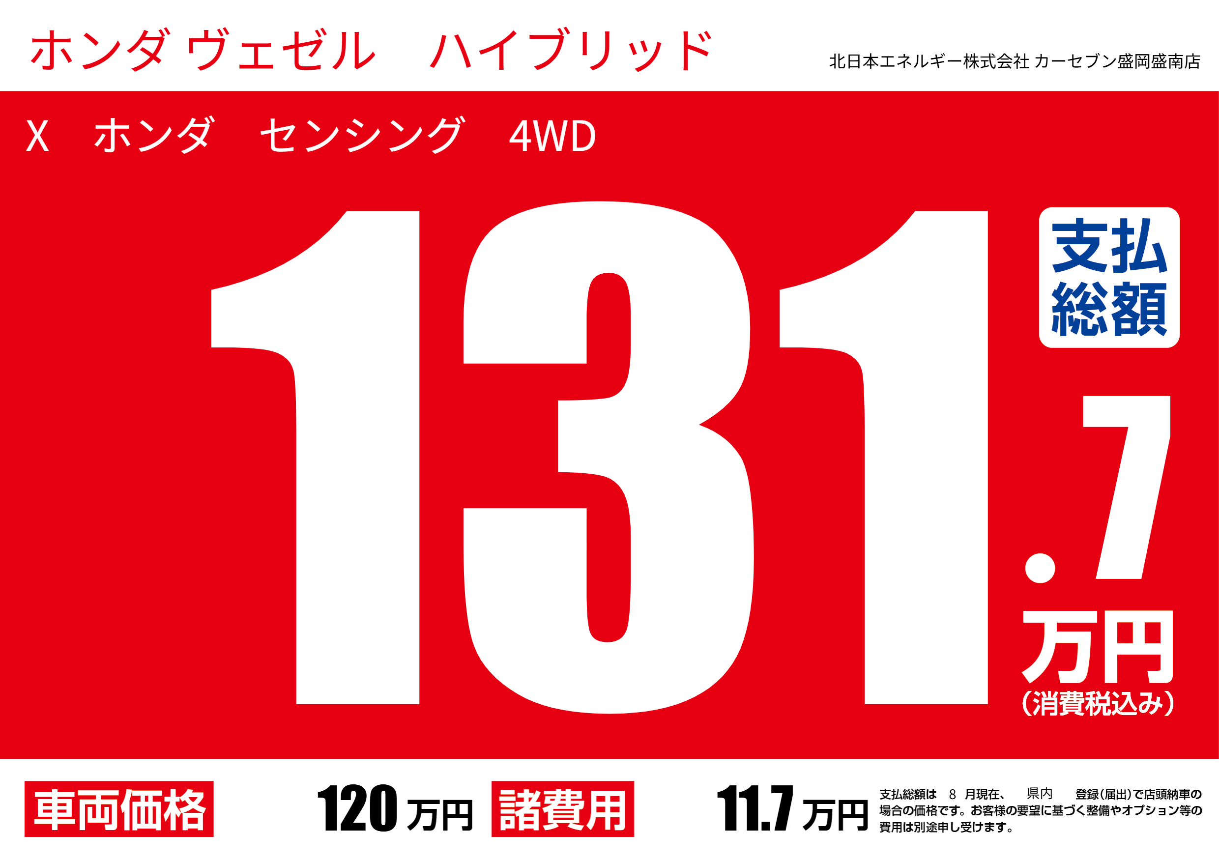 | 車名 | ホンダ ヴェゼル ハイブリッド | グレード ミッション 排気量 |