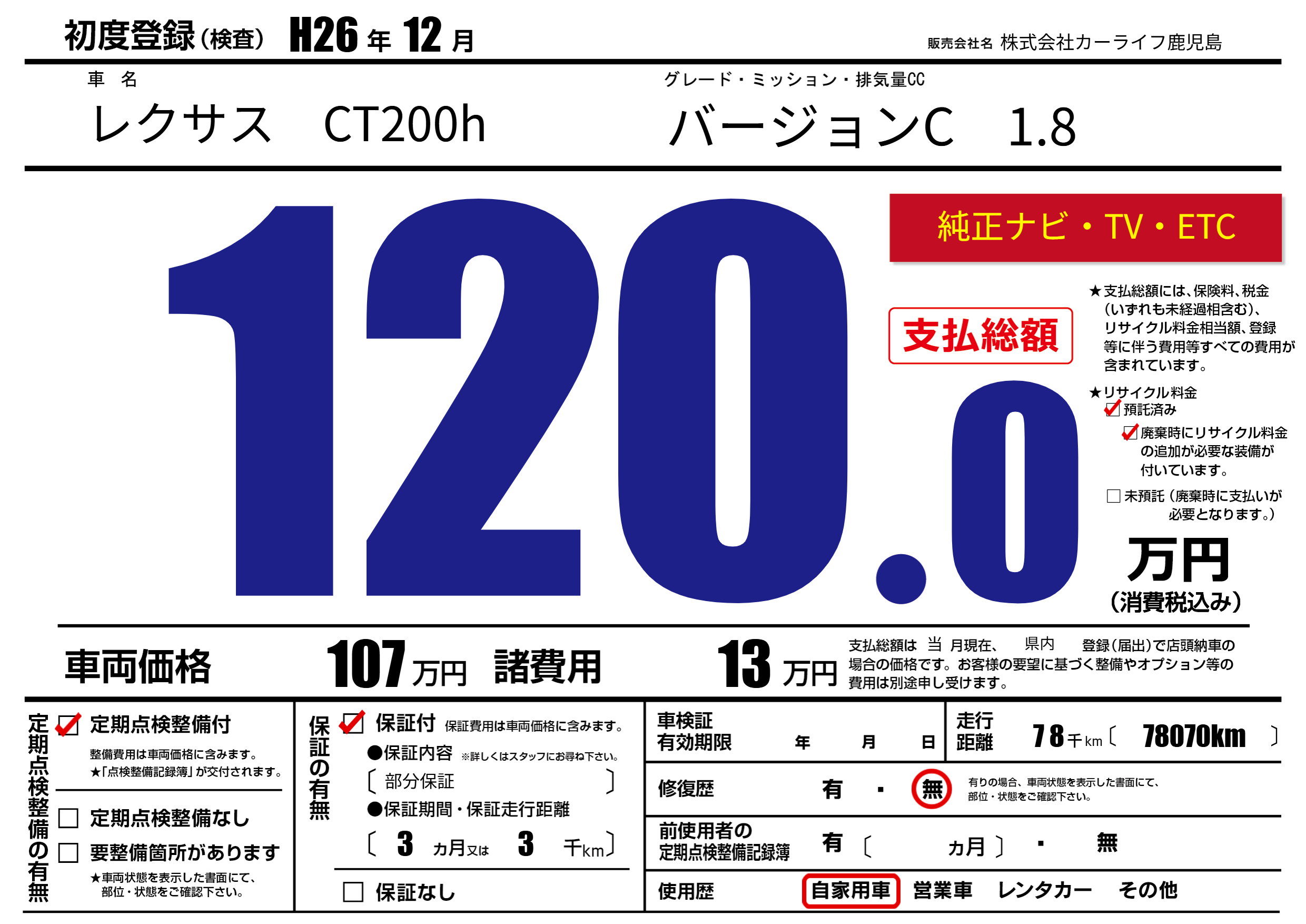 | 定期点検整備 | 定期点検整備あり | ||