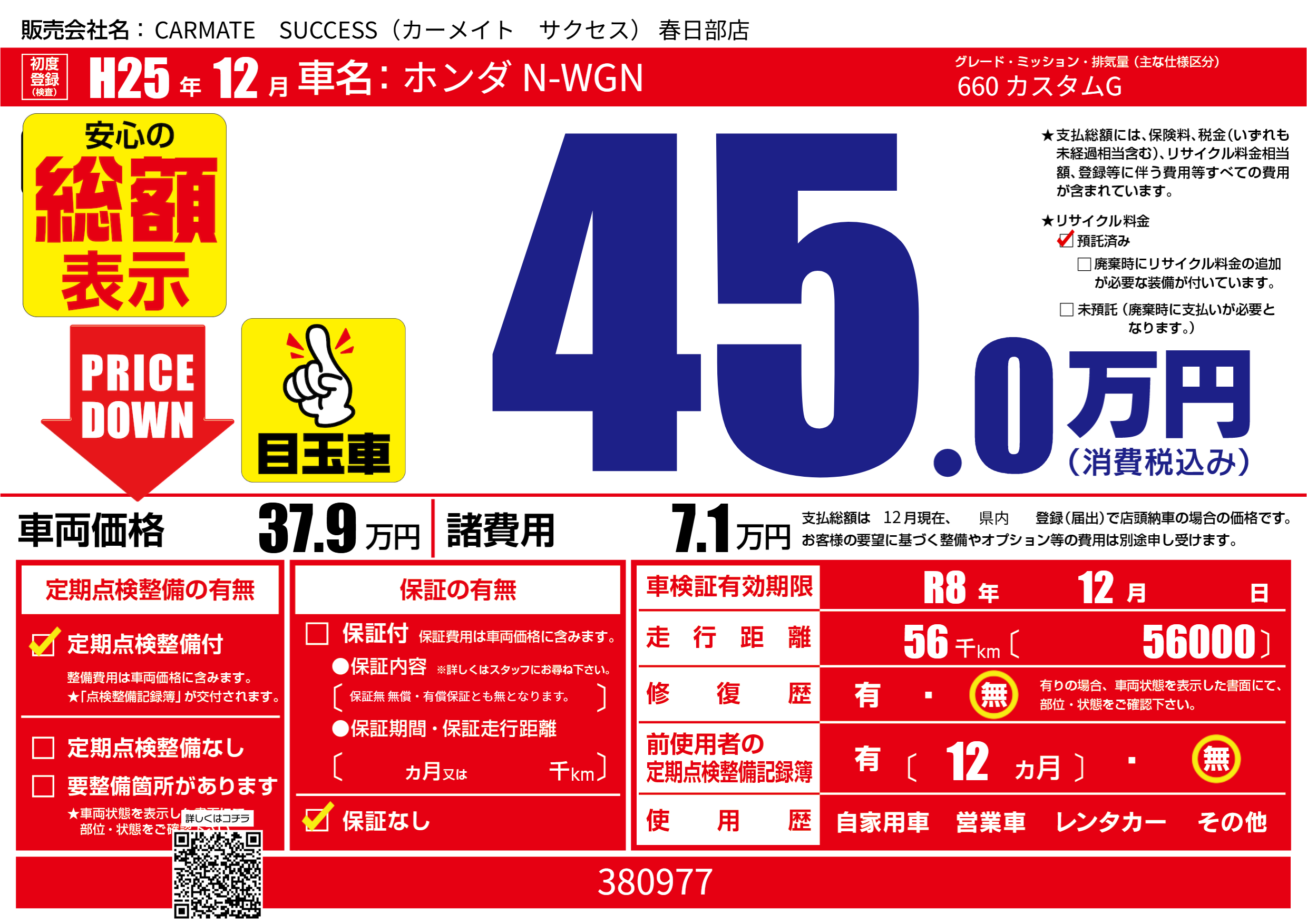 なし | 車検制限 | R8年12月---月 |