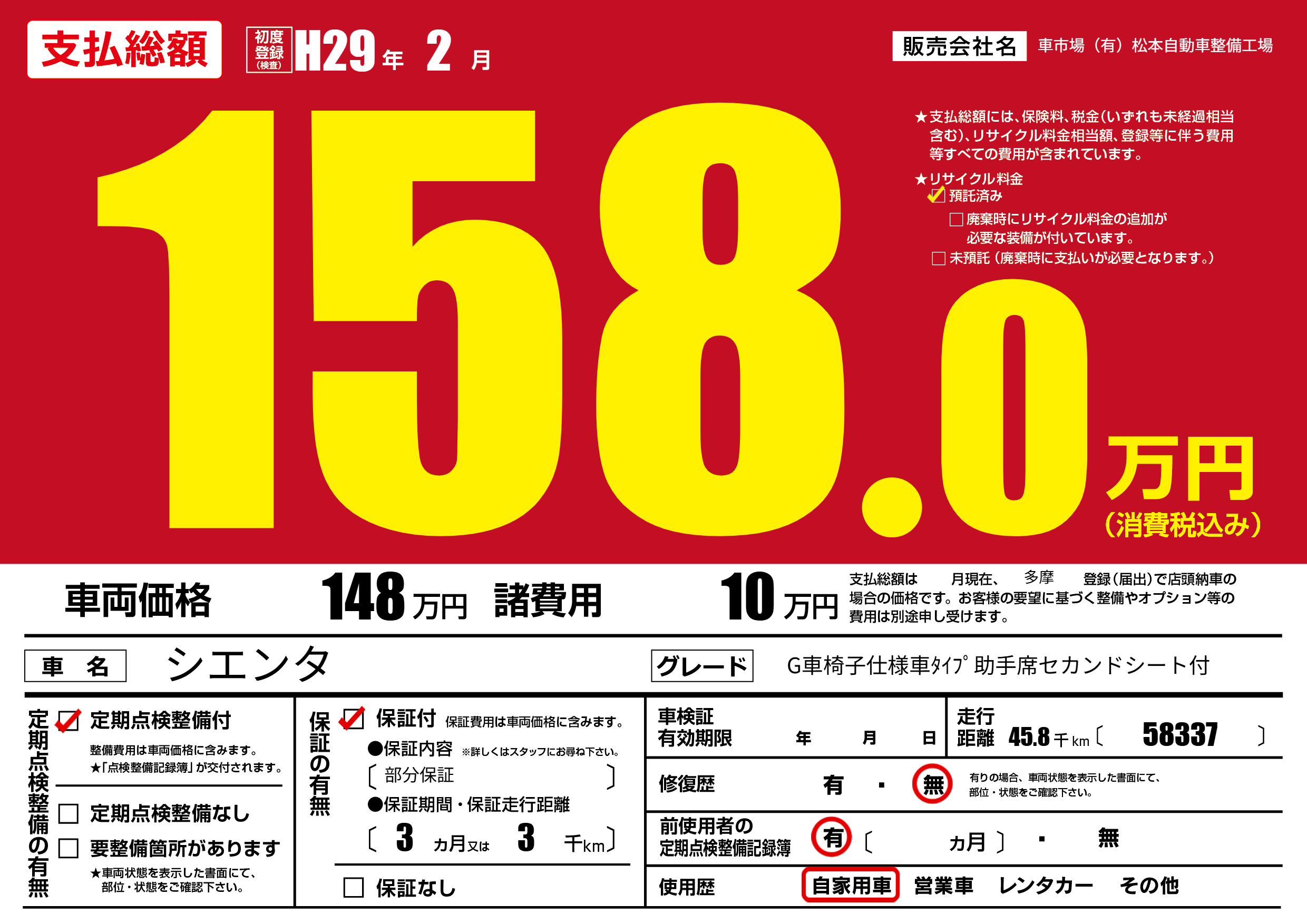 | 定期点検整備 | 定期点検整備あり | ||