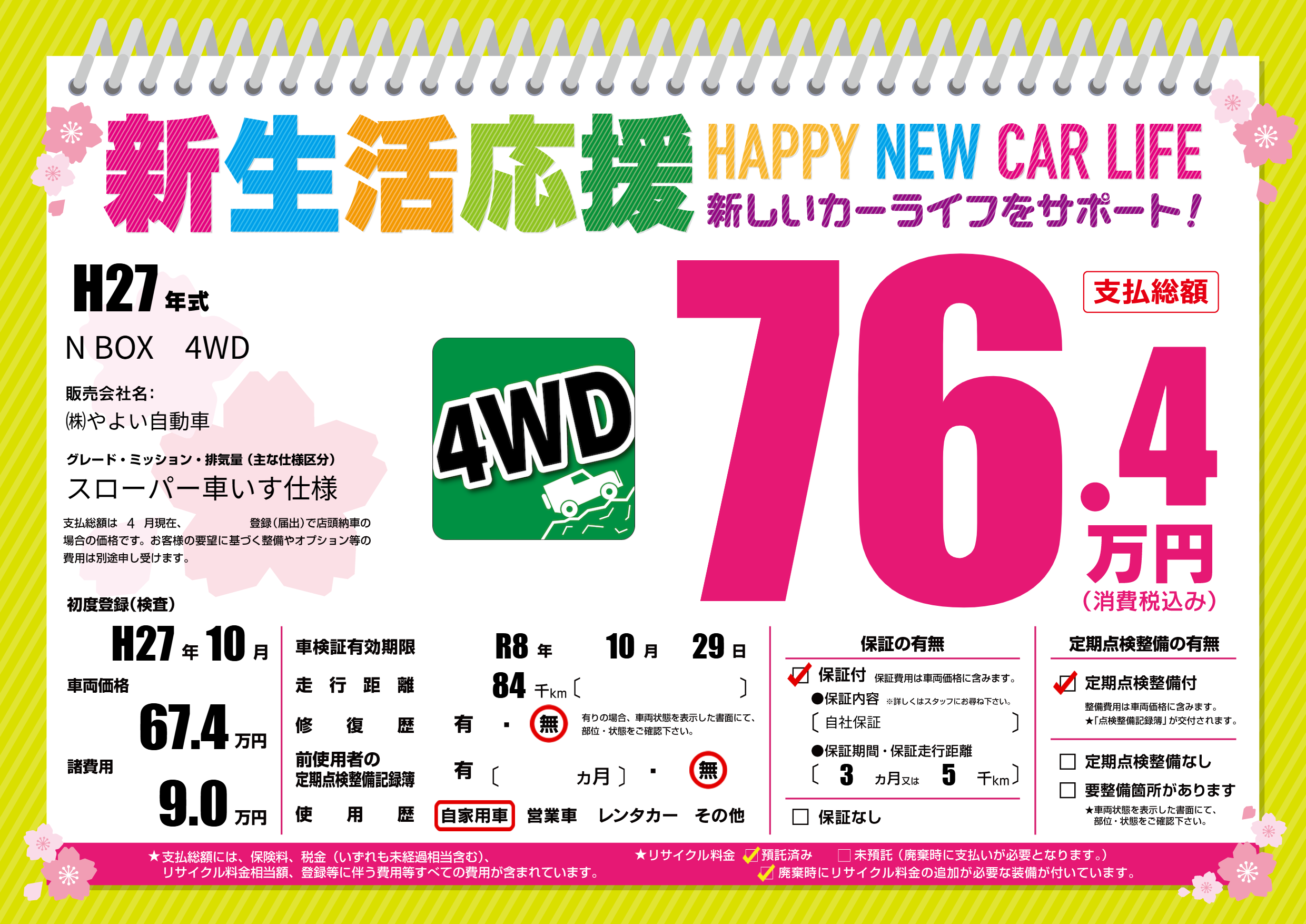 | 車検制限 | R8年 10月 29日 | ||