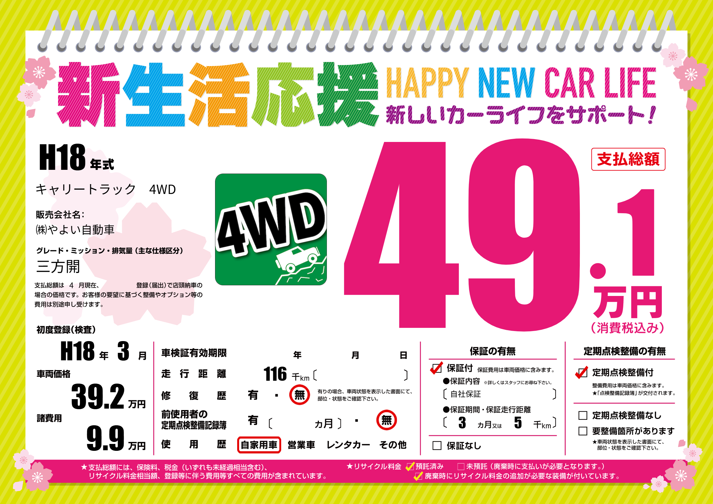 | 車名 | キャリートラック 4WD | グレード ミッション 排気量 |