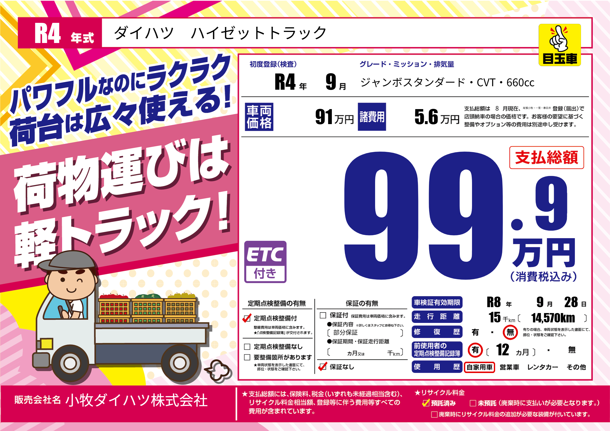 | 車検制限 | R8年 9月 28日 | ||