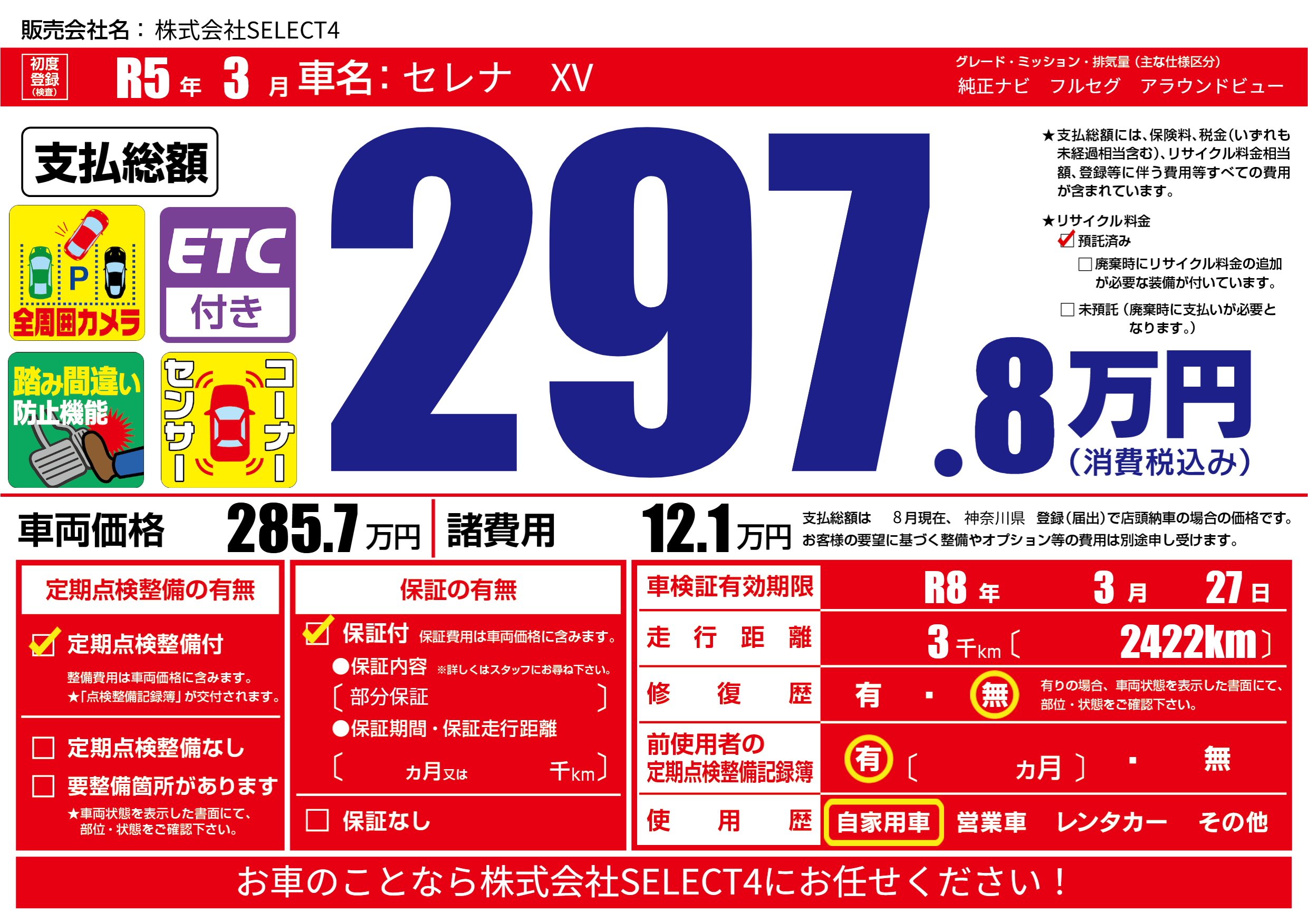 | 車検制限 | R8年 3月 27日 | ||