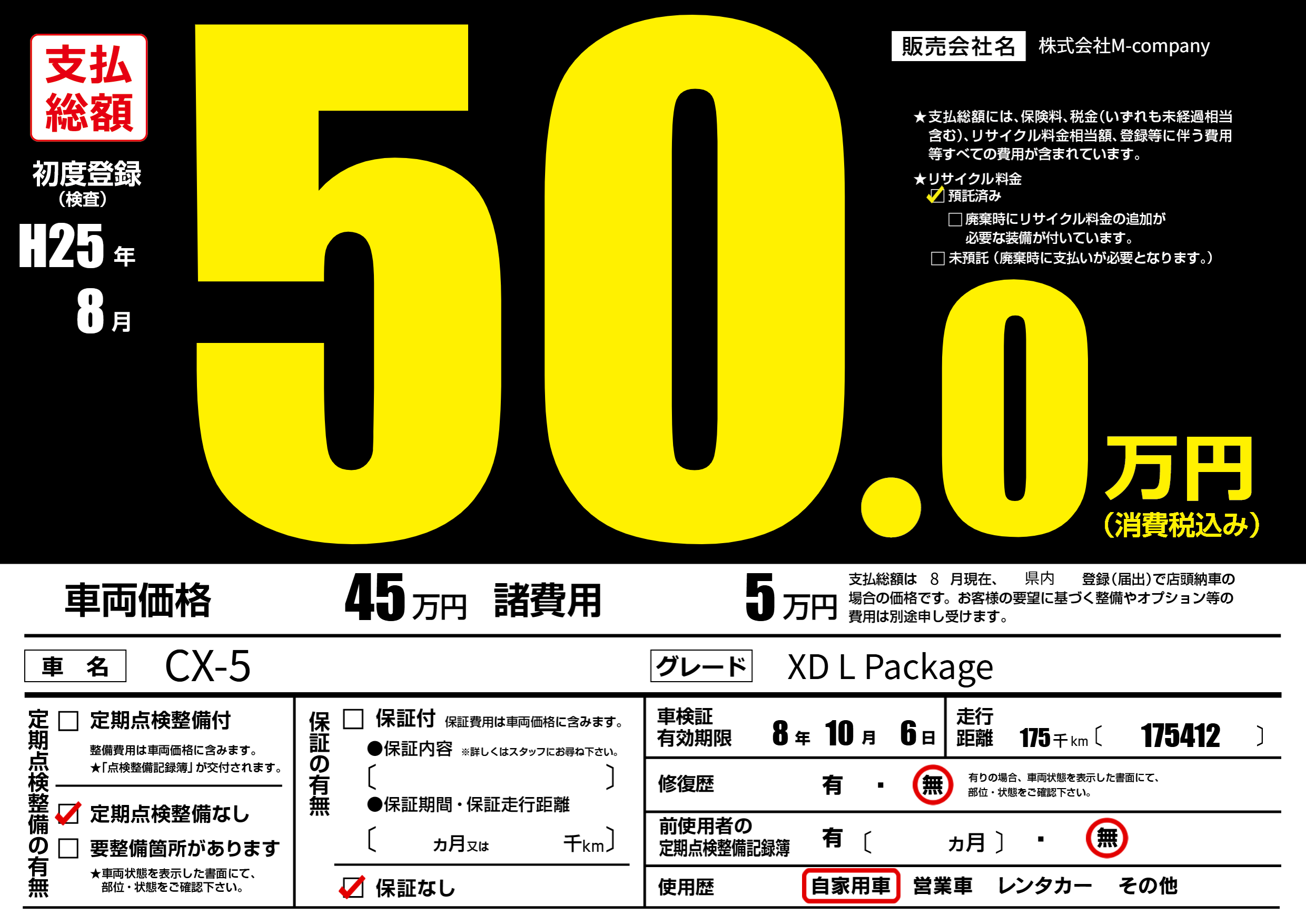| 定期点検整備 | 定期点検整備なし | ||