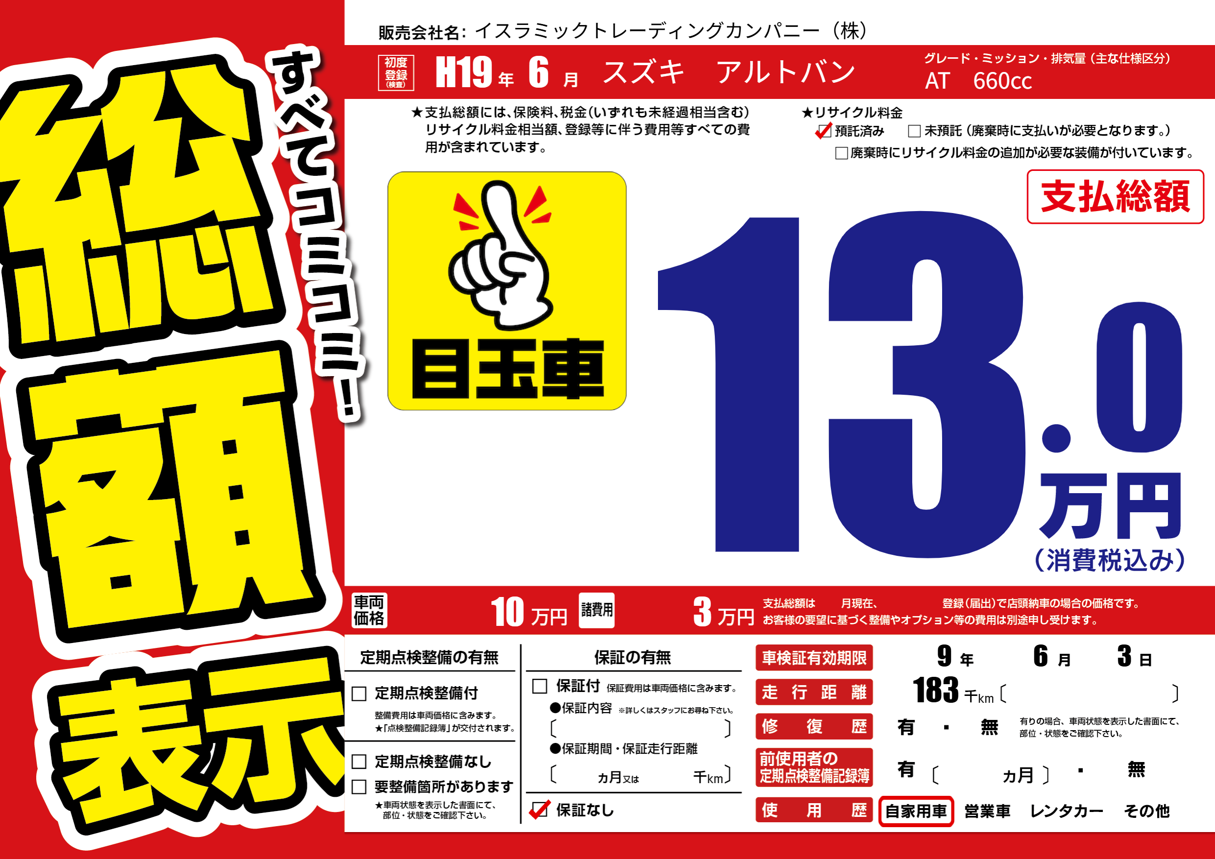 | 車検制限 | 9年 6月 3日 | ||