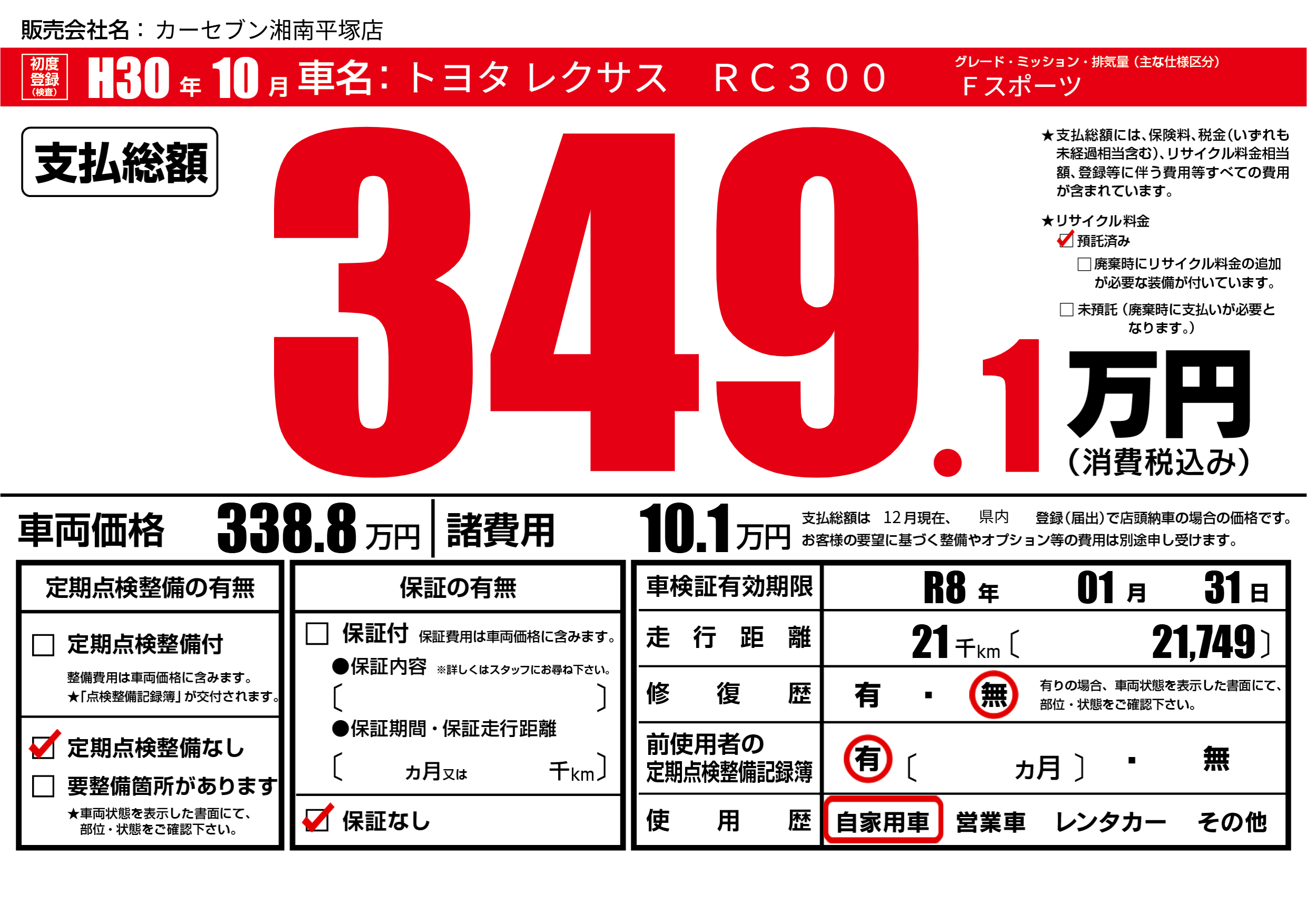 | リサイクル料金 預託済 |