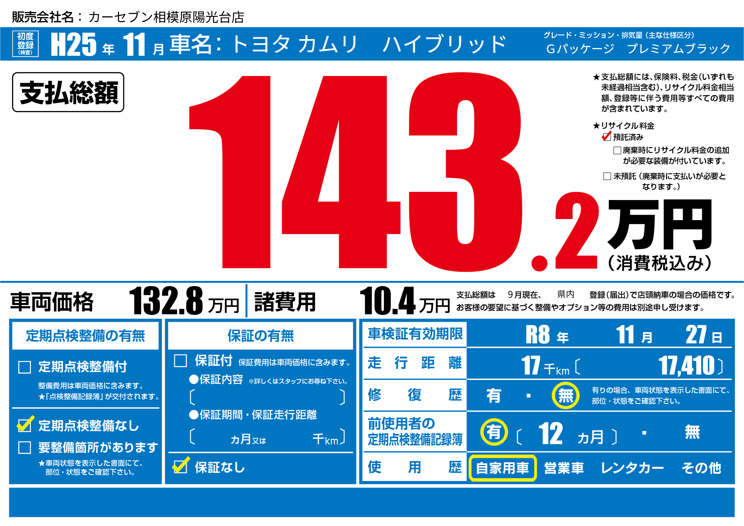 なし | 車検制限 | R8年11月27月 |