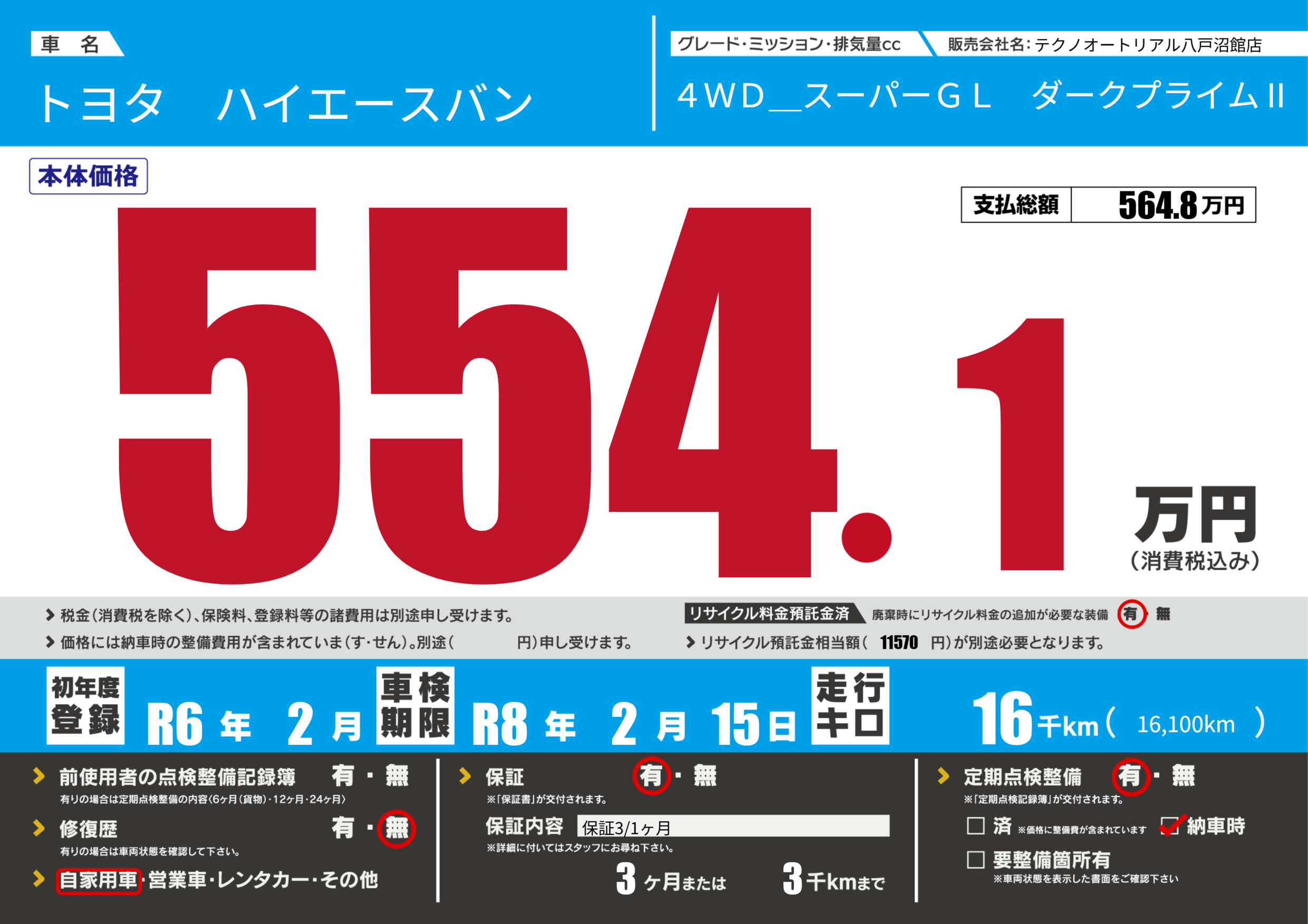 | 走行キロ | 1.6万km | 初年度登録 | R6年2月 |